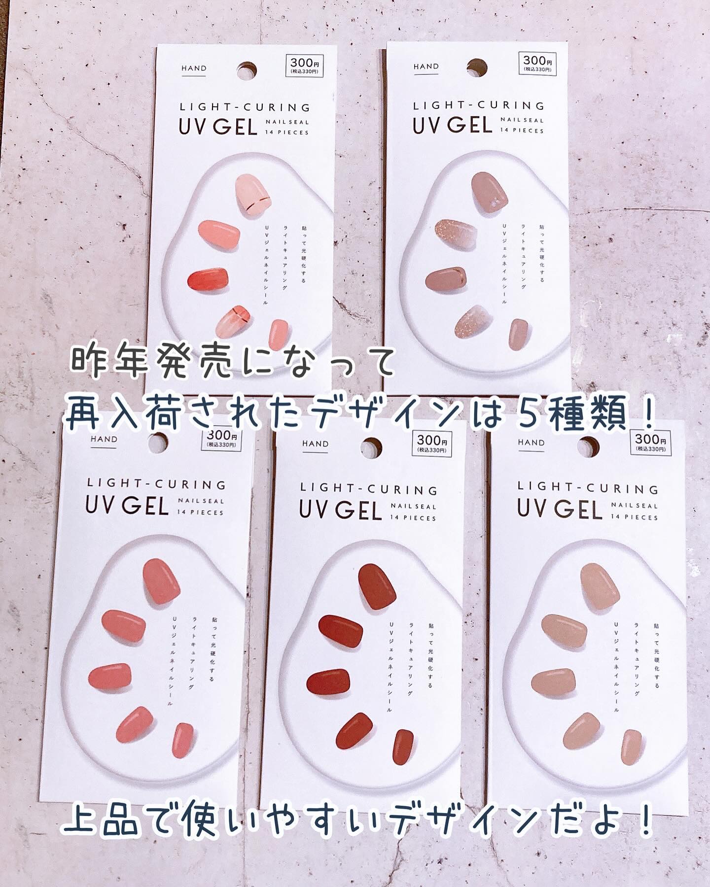 【休日ネイルのネイルデザイン】キャンドゥ ライトキュアリングUVジェルネイルシールの口コミ - 超優秀!100均で買えるおすすめネイルシール!キャンドゥの硬化タイプの新作をゲットしました!