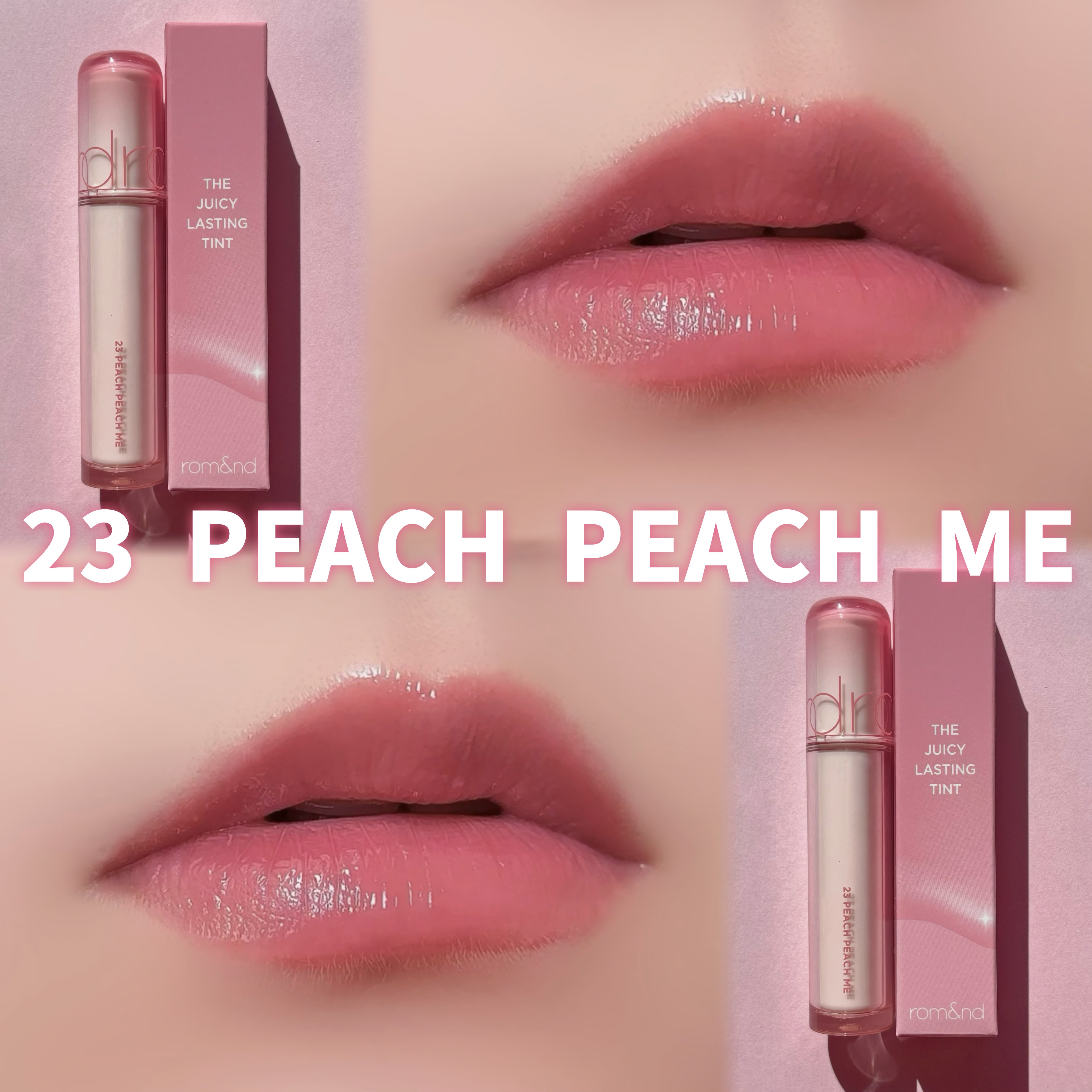 rom&ndザジューシーラスティングティント18ジュジュブジャム23ピーチピーチミー2月18日発売🌸リニューアルしたロムアンドのザジューシーラスティングティント。唇が荒れやすい私にはティントって苦手なんだけど、これはとってもみずみずしいテクス...