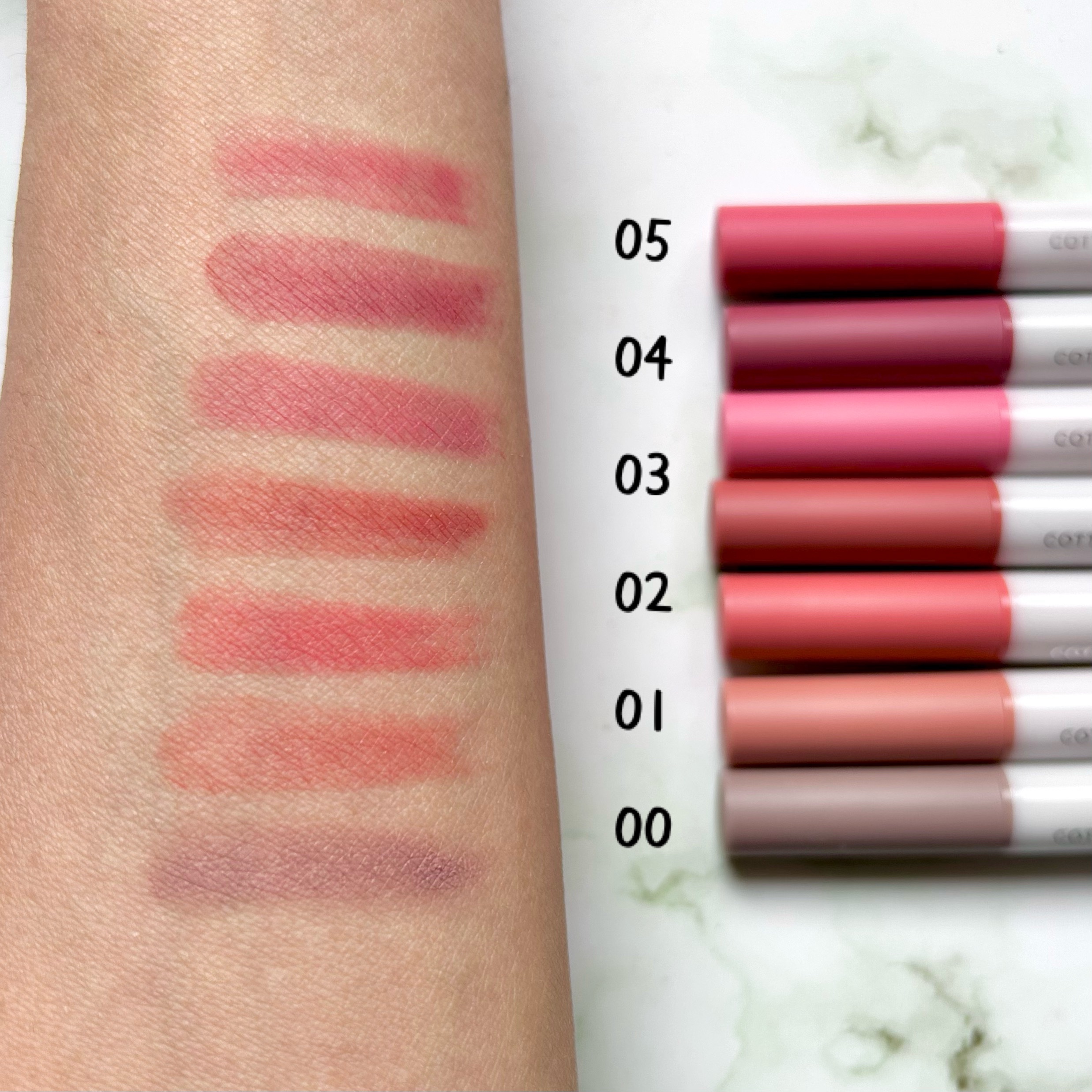 - ふんわりマシュマロ唇が作れちゃう「コットンメルティングリップ」が登場! シアバターと8種のヒアルロン酸配合で、マットリップなのに軽やかにうるおう新概念リップです。 イエベ・ブルべ問わず肌馴染みのいい7色展開で、いずれも落ち着いたミュートカラーが特徴。唇の質感をふんわりとぼかしながらマシュマロのような唇を演出します。 さらにチークやアイシャドウ、シェーディングにも使えるマルチユース。 1本ポーチに忍ばせればメイク直しも簡単です。