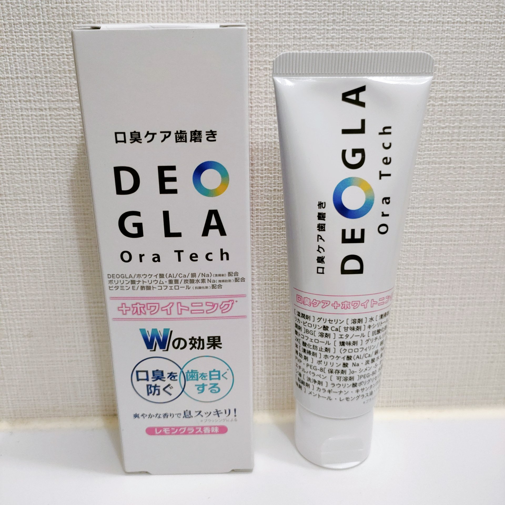 - \独自成分「DEOGLA®︎」(清掃剤)配合/ 創業200年を超える素材メーカーがつくる口臭ケアに特化した歯磨き粉! 製品の特長: 多数のご要望をいただいていた、口臭とホワイトニング *を1本でケアいただけます。ホワイトニング *はもちろん、独自成分DEOGLA配合で口臭にアプローチ。 徹底的にこだわった成分を配合しているので、口臭ケアとしてだけでなくお口のトータルケアにご活用ください。 ミントが苦手な方にもおすすめな、レモングラス香味、控え目な泡立ちでしっかりとブラッシングしていただけます。 ▶独自成分DEOGLA : 化粧品成分名称 ホウケイ酸(Al/Ca/銅/Na) *ブラッシングによる