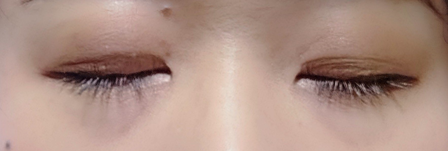 下段真ん中を乗せて下段右を広めに乗せたらいつもと違う雰囲気になりました。 くすみが得意な方は広めに乗せると素敵だと思います! 私はくすみすぎたかな?と上段左のラメを広めに乗せたらキラキラしすぎました😂