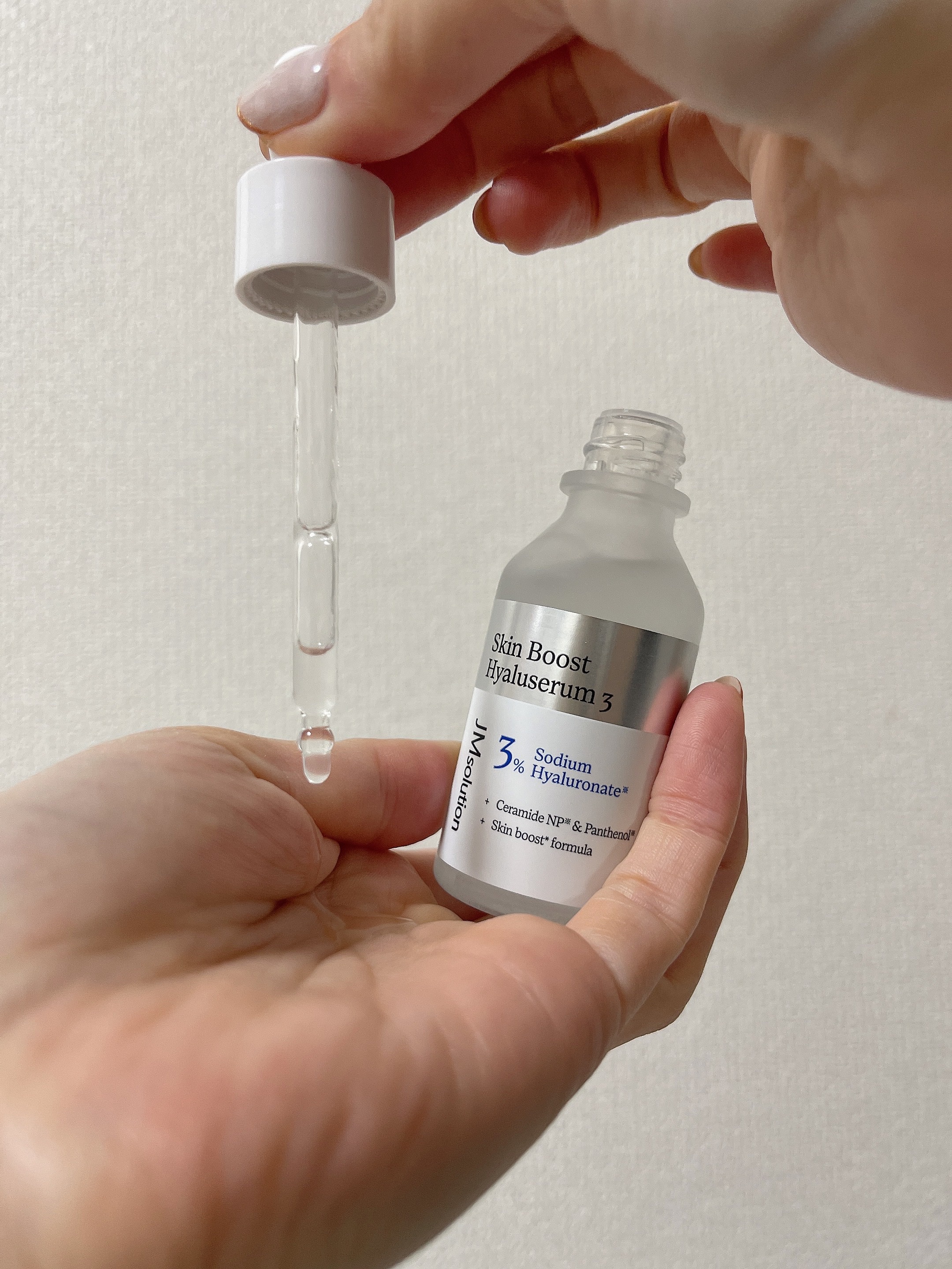 韓国発の人気スキンケアブランド『JMsolution』より導入美容液「スキンブースト」シリーズを新発売♡ ヒアルロン酸が 3%配合☆ 乾いた肌へ潤いを与え、しっとり肌へと導く導入美容液です🙋💕 少しとろみのある、みずみずしいテクスチャーです🙋💕 スッと肌に馴染むような、伸びの良い、なめらかな塗り心地でした✨