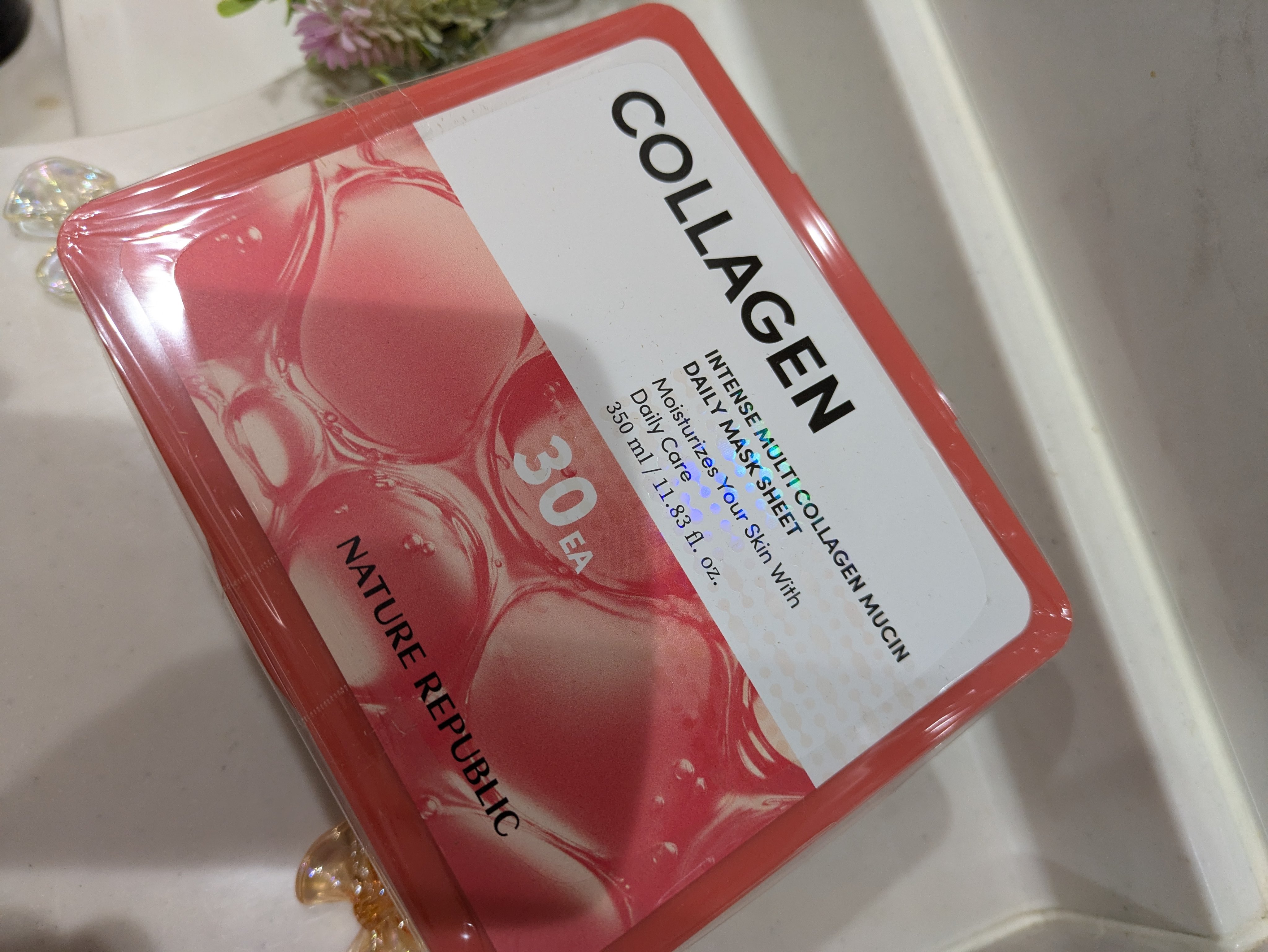 弾力ケアができる『コラーゲンシートマスク+ペプチドブースターセラム』のセットを使用したよー! 8種のペプチド成分が配合したブースターセラムでたっぷり水分をチャージ👍さらにコラーゲンシートマスクで追い弾力ケア🙆♀️ 密着力がすごくあって気持ち良いよ〜♥顔全体を覆ってくれるし、しっとりさせてくれる仕上がりもめちゃ好き(* ॑꒳ ॑* )ゞ