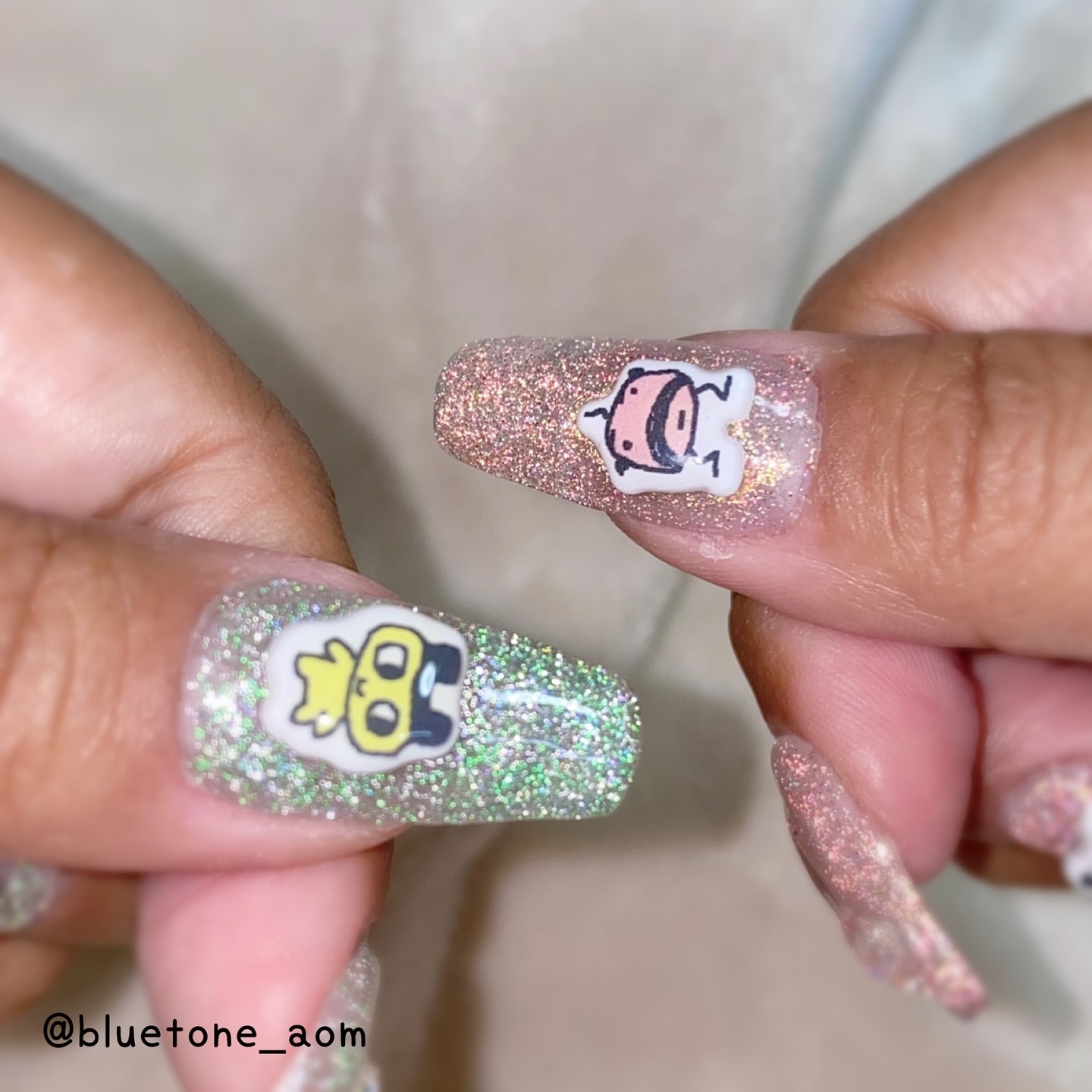 ラメがしっかりしてるし クリアカラーが入ってるから オーロラパウダー無しでも 充分キラキラしました! 反射強めのフィルムなので 実物はもっと うるうるとキラキラが強いです! ビー玉みたい🥺 ネイルシール長持ちさせたいけど ちょっと飽きてきたな〜って時とかに 全然違った印象になるのでオススメです! Seriaのベースジェル 本当にうるうるネイルしやすいので オススメしたい🙆♀️