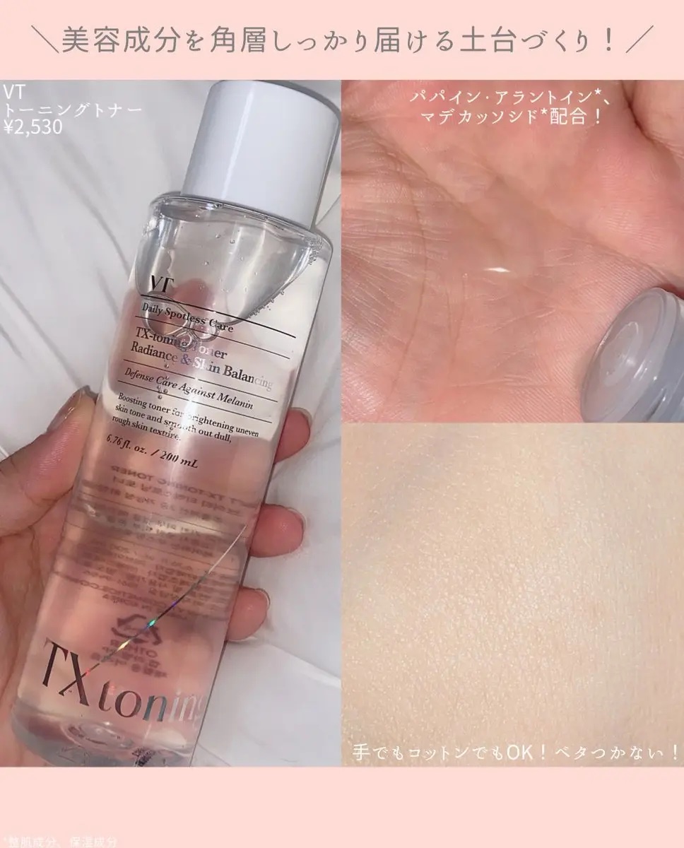 総じて言うとV Tを使うようになってニキビのできる数が減ったと思います。どれが肌に効果があったのかとピンポイントでこれ!!って言うのはわからないですが、リードルショットとTXトーニングトナーは好きです😊