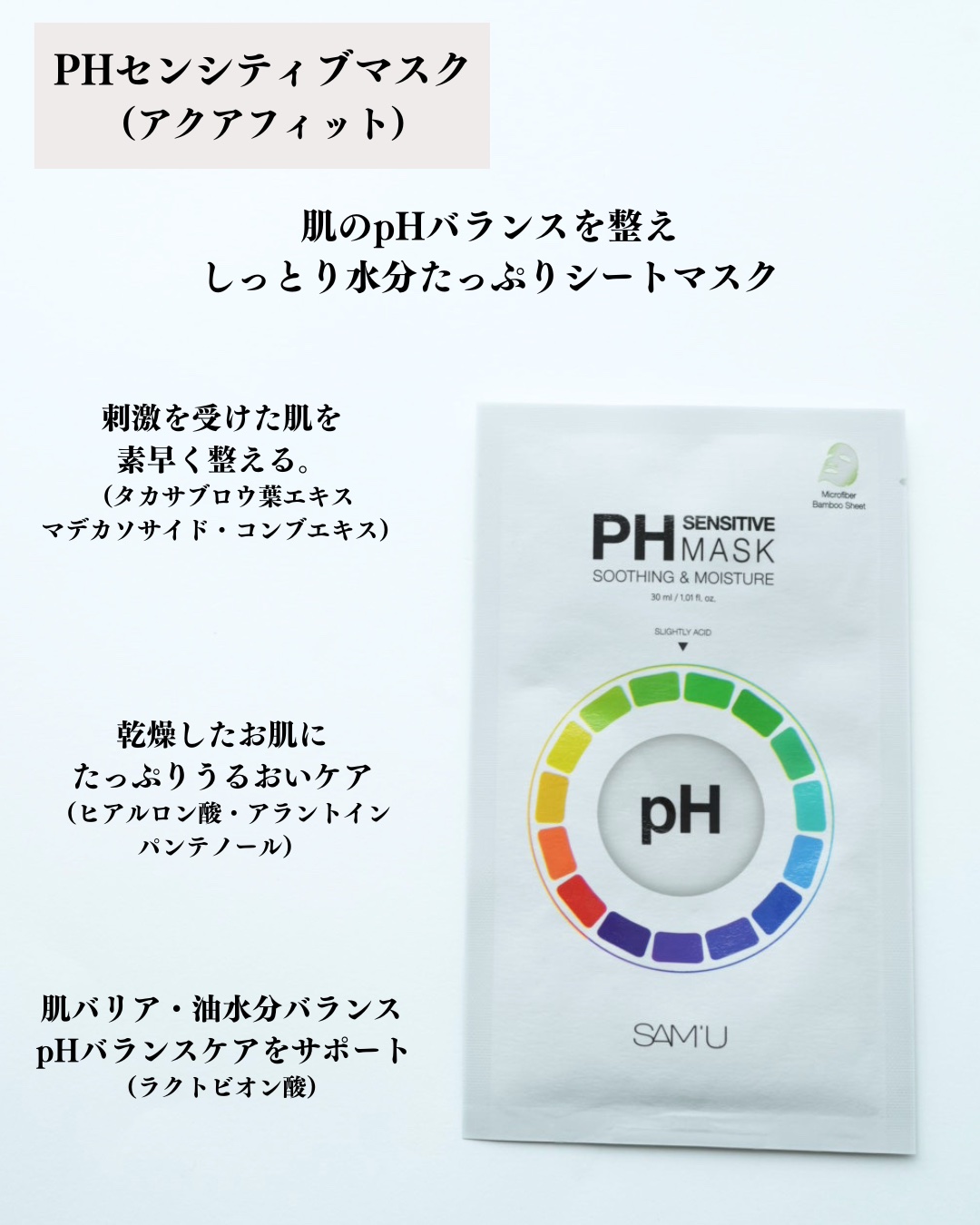 SAM'UPHã»ã³ã·ãã£ããã¹ã¯6çš®æ¯èŒïŒðPHã»ã³ã·ãã£ããã¹ã¯ã¢ã¯ã¢ãã£ãã也ç¥ããã¡ãªèã«ãã£ã·ãã®æ°Žåãäžãããã©ã³ã¹ãæŽããã·ãŒããã¹ã¯ïŒãã¢ã«ãã³é ž(ä¿æ¹¿æå)ãã¢ã©ã³ãã€ã³(æŽèæå)ããã³ãããŒã«(ä¿æ¹¿æå)ãèãæœ€ããç©ãã...