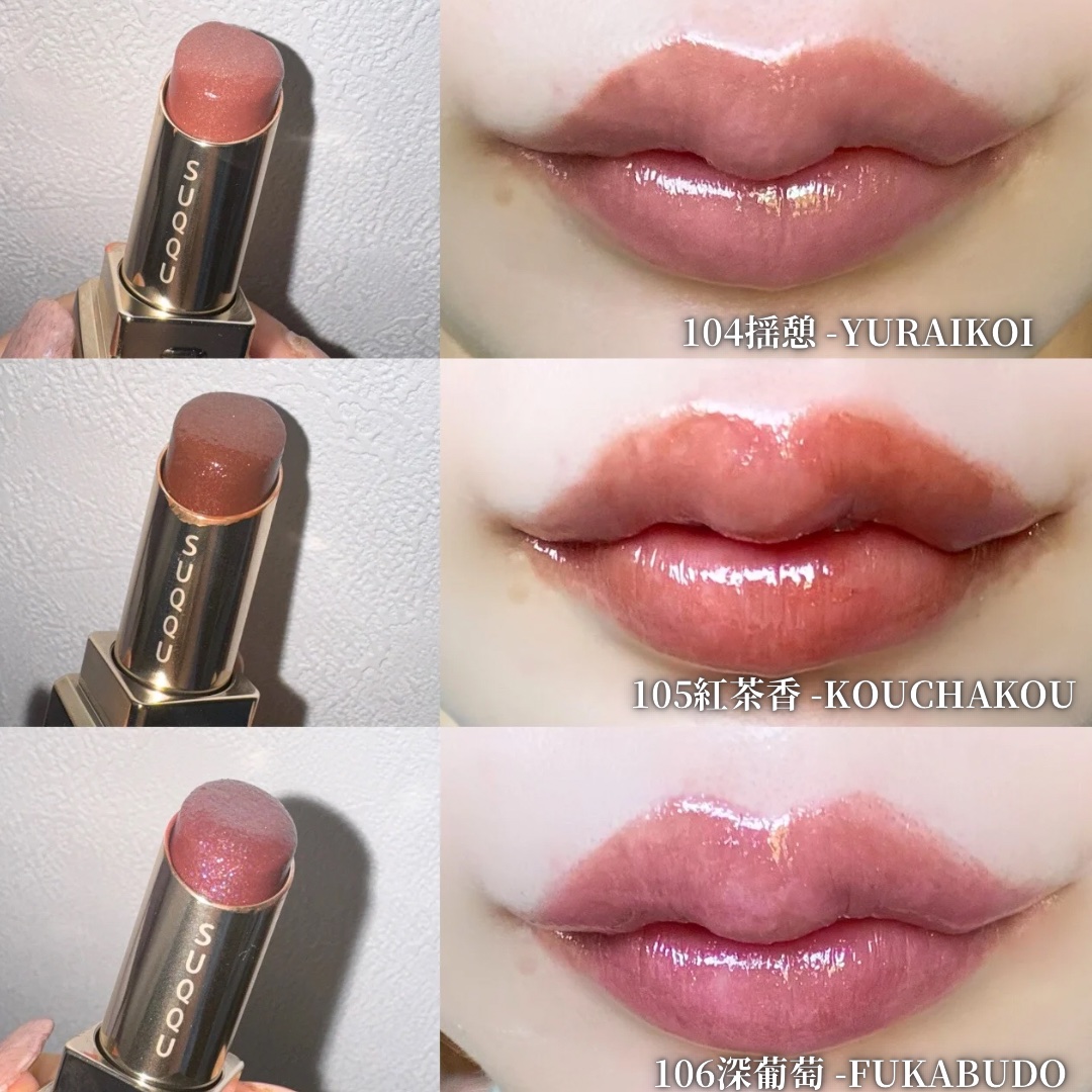 昨日発売のSUQQUのホリデー🤍✨️✨️ わたしはリップをゲットしてきたよ〜〜! 104はベージュカラーにグリーンパールがたっくさん入っててもうこれはこれは可愛いの🥹🫶 SUQQUのモイスチャーグレイズリップスティックは、ほんとに質感が大好きでスルスル塗れるのに厚膜感があってむっちり唇になれるよ😚💋