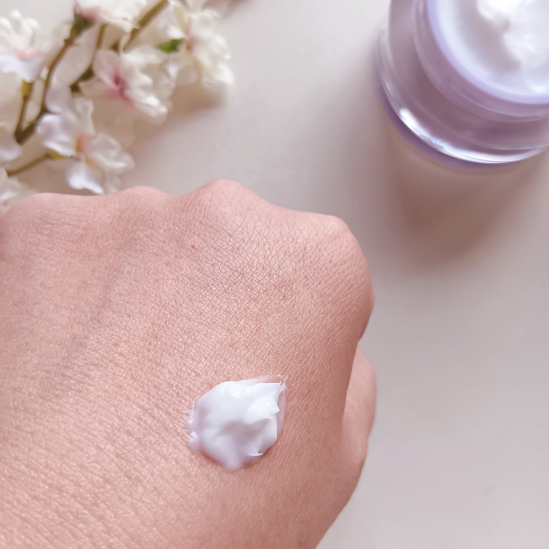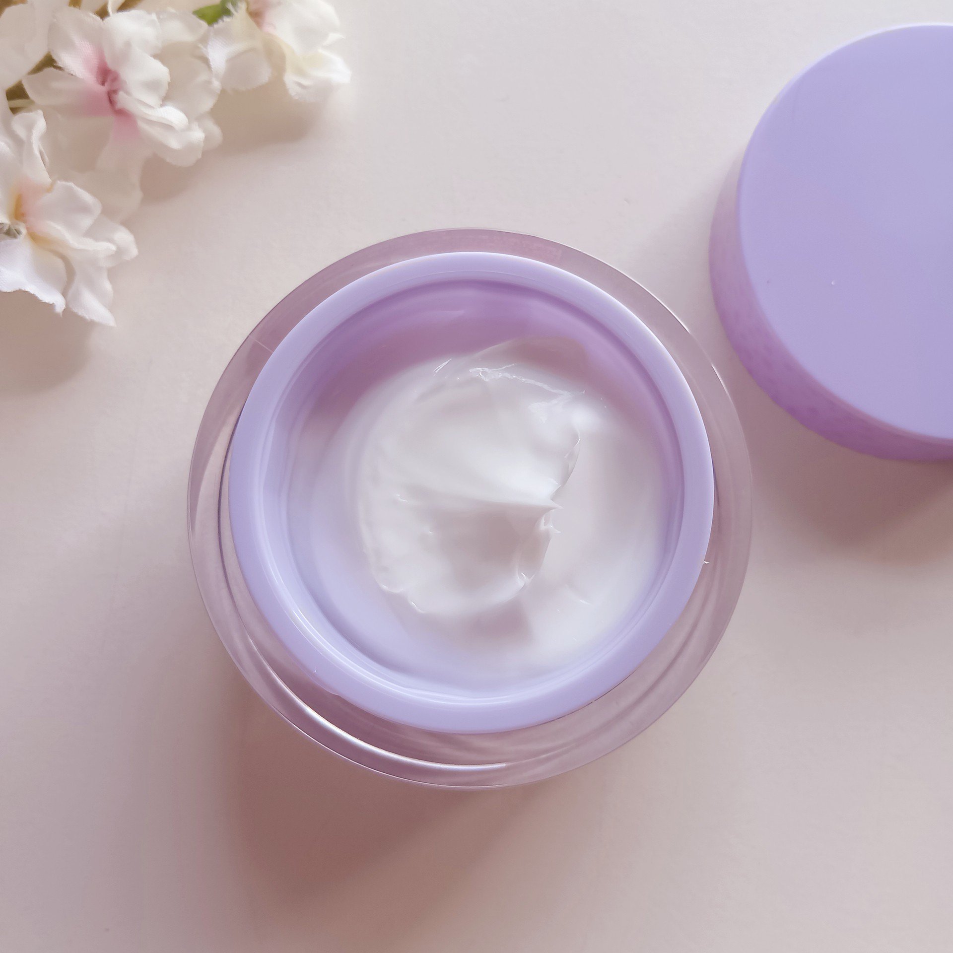 肌を整える「CICA*」成分配合🌿 乾燥などの外部刺激から、肌を予防してくれる成分💪 とにかく可愛すぎる、パープルのパッケージ😘 ジャータイプの容器で、スパチュラの付属はなし💦 なめらかで伸びが良く、ベタつきなく肌に馴染んでくれます☺軽めなつけ心地なので、朝のスキンケアでもOKです❣