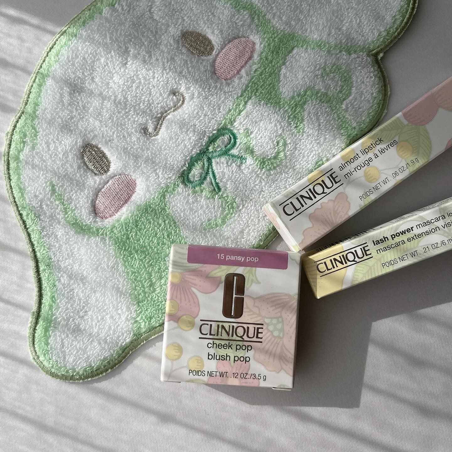 シナモロールコラボのアイテムをプレゼント🎁 前回も紹介したんだけど CLINIQUEとシナモロールが初スペシャルコラボレーション🫢🩷 クリニークのラボコート(自衣)、グリーンのリボンベ類にはチークポップルリーナポップでメイクアップ🩷 ぬいぐるみポーチも可愛すぎる!! もふもふで気持ちいいよ🤍