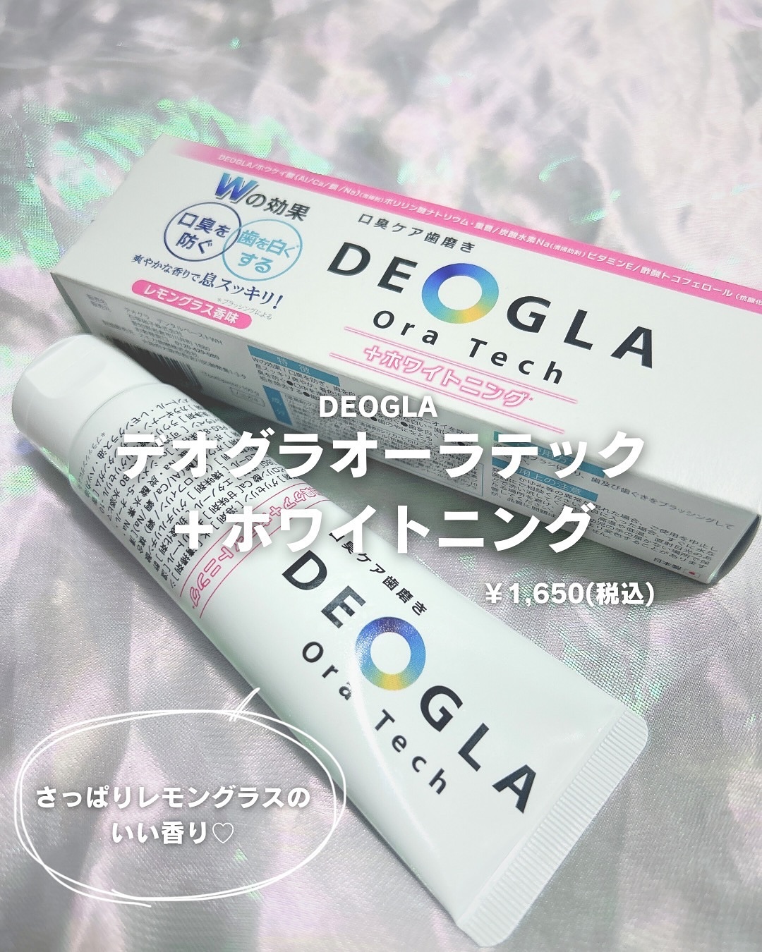 - \独自成分「DEOGLA®︎」(清掃剤)配合/ 創業200年を超える素材メーカーがつくる口臭ケアに特化した歯磨き粉! 製品の特長: 多数のご要望をいただいていた、口臭とホワイトニング *を1本でケアいただけます。ホワイトニング *はもちろん、独自成分DEOGLA配合で口臭にアプローチ。 徹底的にこだわった成分を配合しているので、口臭ケアとしてだけでなくお口のトータルケアにご活用ください。 ミントが苦手な方にもおすすめな、レモングラス香味、控え目な泡立ちでしっかりとブラッシングしていただけます。 ▶独自成分DEOGLA : 化粧品成分名称 ホウケイ酸(Al/Ca/銅/Na) *ブラッシングによる