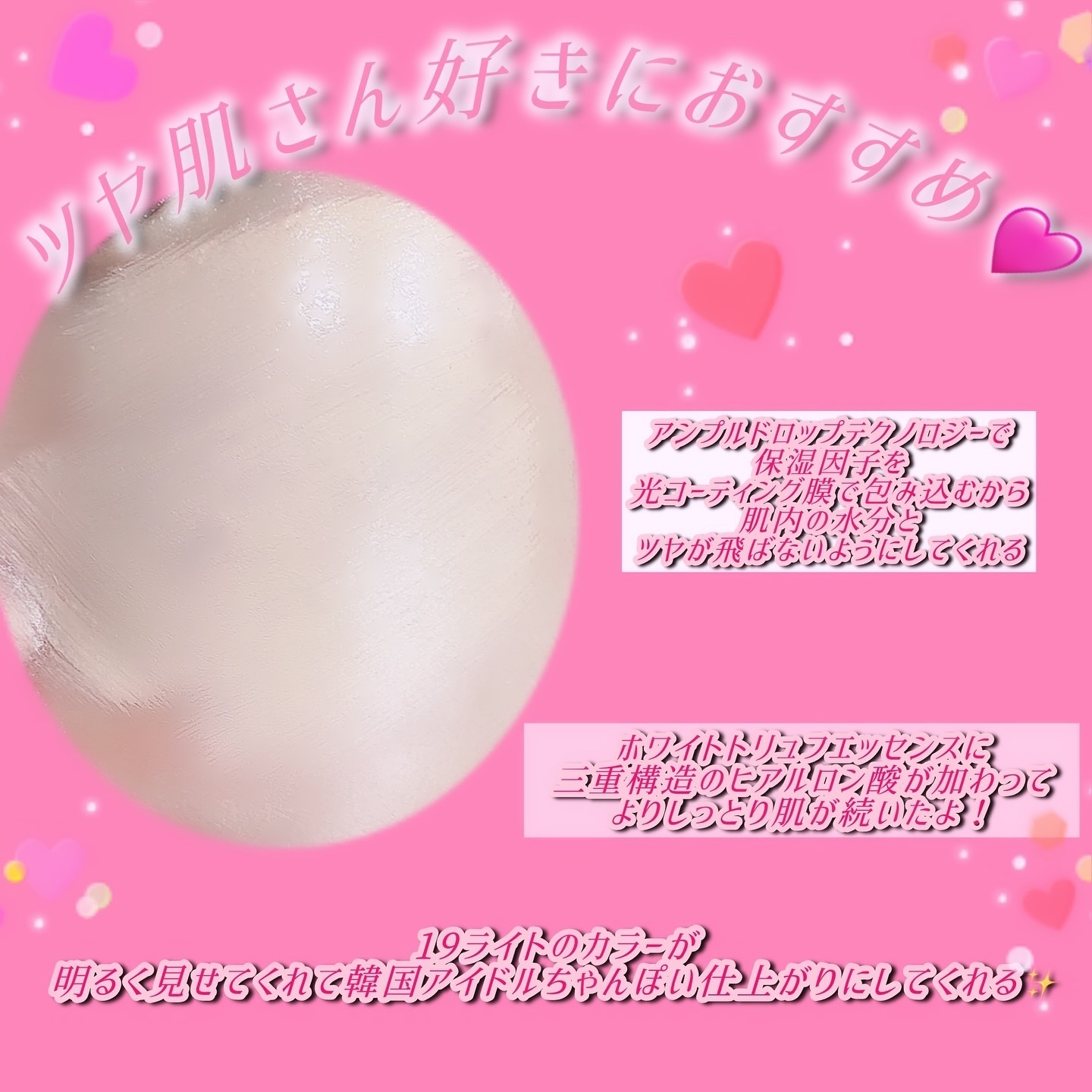 水分エッセンス61%の清涼感と水分感が感じられるメッシュクッションタイプ🤍 毛穴が詰まらないからトラブル肌にもピッタリ💗 🔎ノンコメドジェニックテストも完了されています🙂💖 本当にお肌も均一に塗れてキレイなツヤ感がでてメイク初心者さんにも使いやすいも思います✨🔰