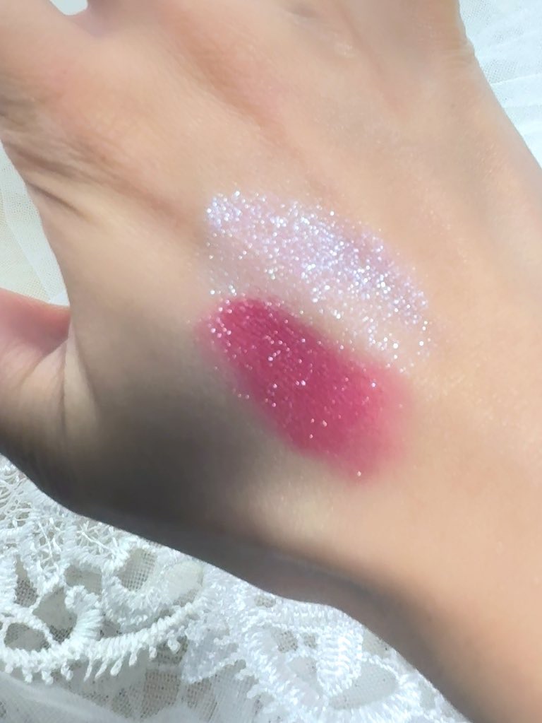 Scoroliteはパット見かなり薄めのラベンダーパープルカラーなのだけと、ラメがぎっしりでもうキランキラン✨ ラズルは粉質がよくて飛ばないのでカラーメイクも美しく仕上がるよ🩷