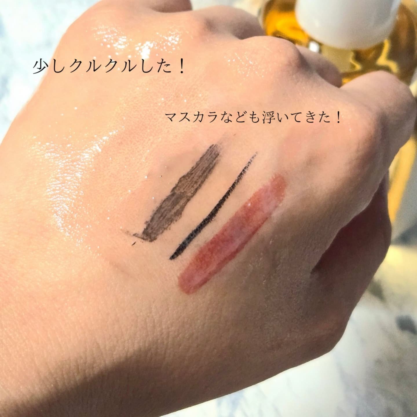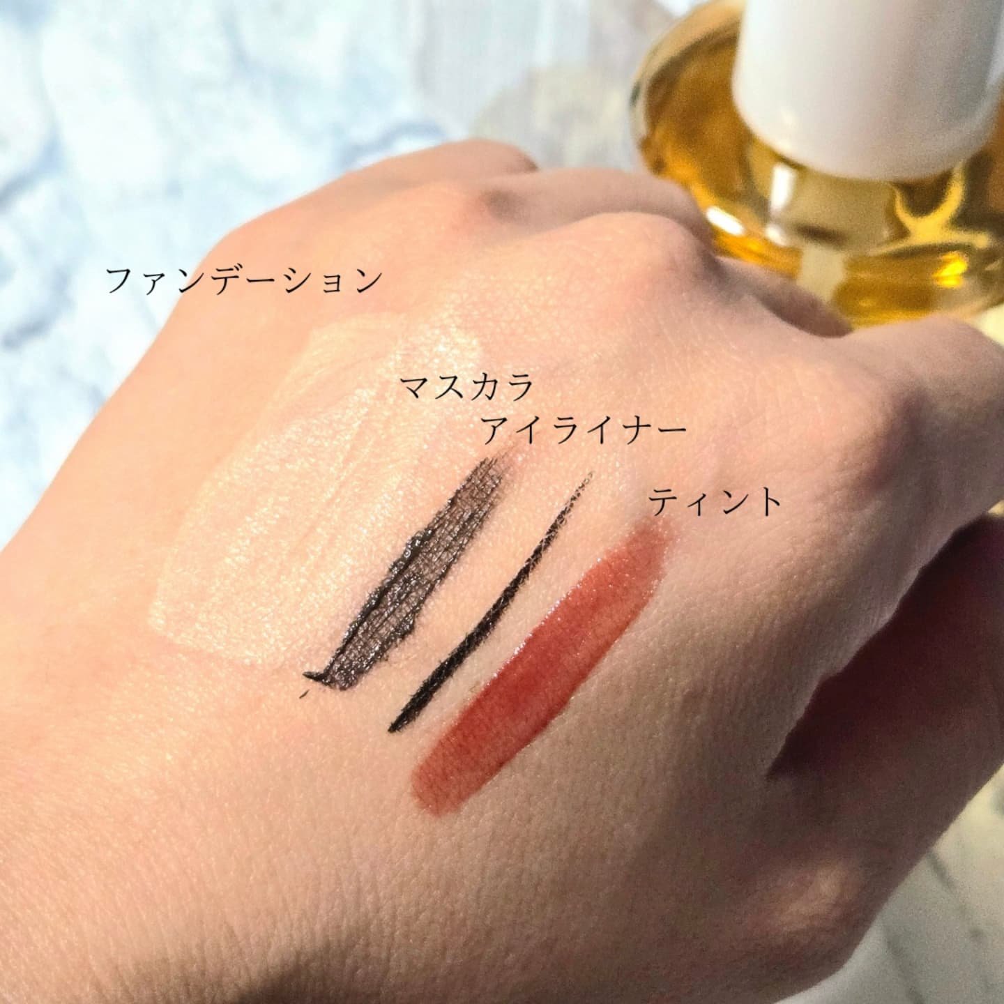 まつ毛の先端部分は透明であるということに着目した、新発想のまつ毛を染めるティント。 3日間朝晩連続の使用で、まつ毛の先端部分を染めあげ素まつ毛をいきいきさせてくれます。 スウォッチ、乾いたら擦っても全然落ちなかったのでまぶたにつかないようにつけた方が良いと思います。 寝方によっては、枕にもついてしまう可能性があるかもしれない、とのことです。 スキンケアの一番最後に使ってくださいとのことでしたがまつ毛美容液と併用する場合はティントの後に美容液を使用するのだそう。