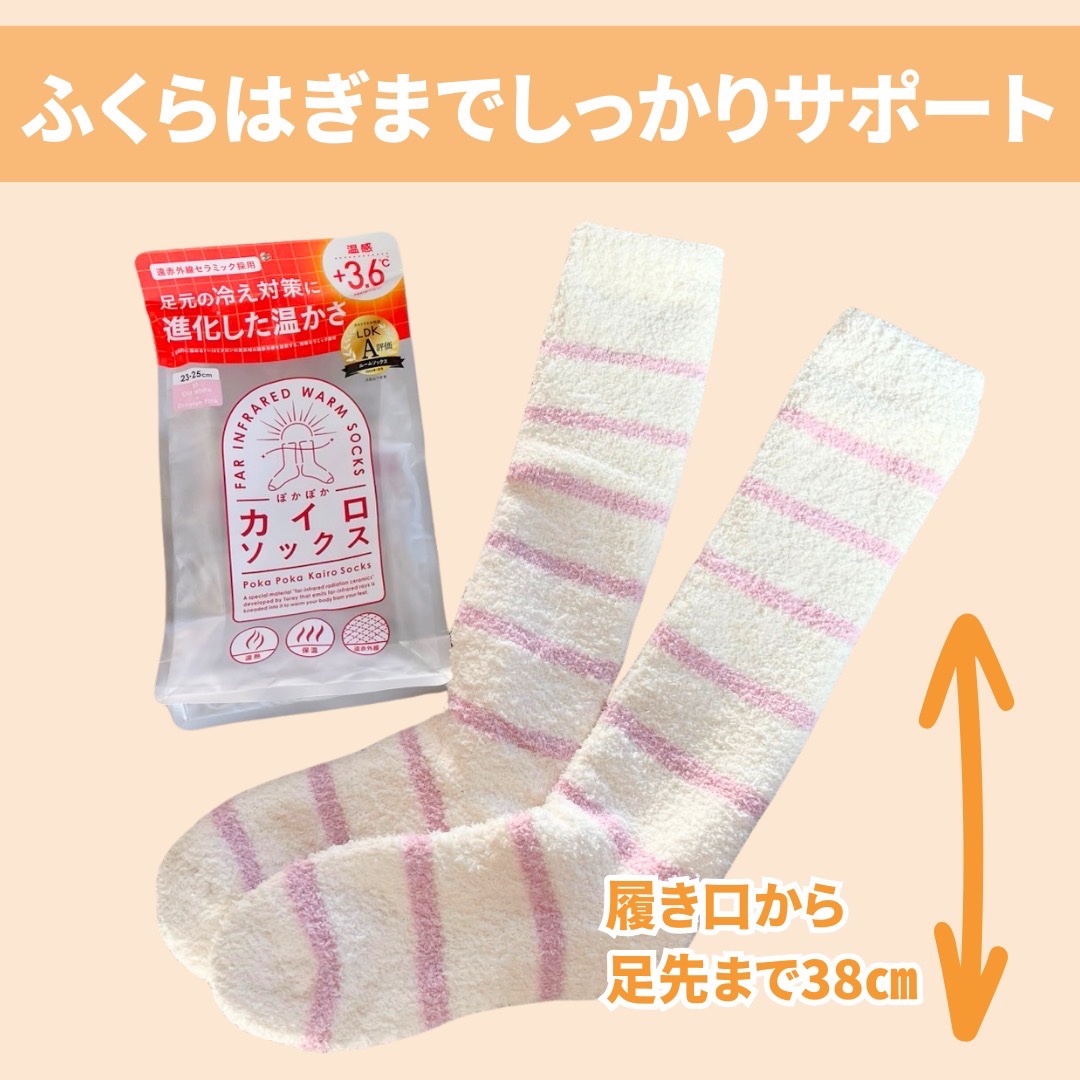 LDK25年1月号(11月28日発売)「ルームソックス部門」ベストバイ1位受賞🥇 ぽかぽかカイロソックス 価格:2,068円(税込) 履くだけで足先の温感+3.6℃ ※のさらに進化したぽかぽかカイロソックス🧦 締め付けを感じず履きやすいから、お家でのリラックスタイムにおすすめです♪ 冬の足元の冷えや、冷え性対策に◎