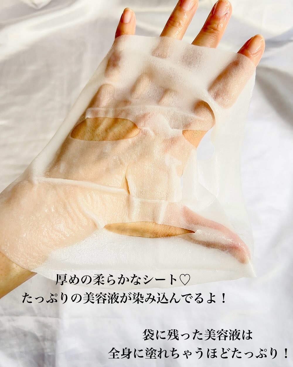 | アンプル30mlとたっぷり多め シートが柔らかくてつけ心地良い | 詳細を見る | ||