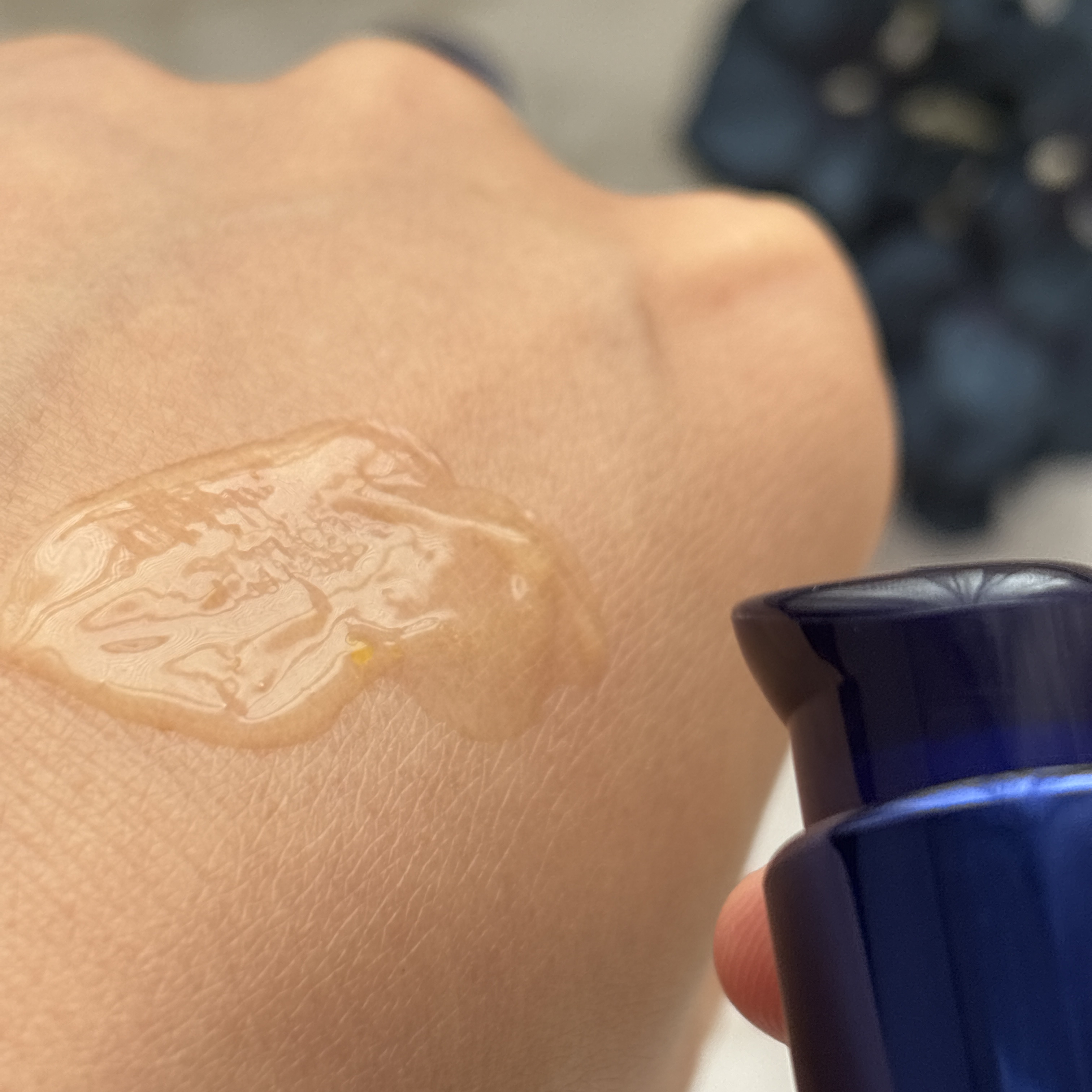 美容液と言うよりは乳液か、クリーム寄りのテクスチャーです。1プッシュ出してみてもこっくりした感じ。手に取って肌になじませてみたところとっても伸びがよいです。べたつくことがなくさらっとしていました!化粧水の後にこの美容液、となっていましたがク...