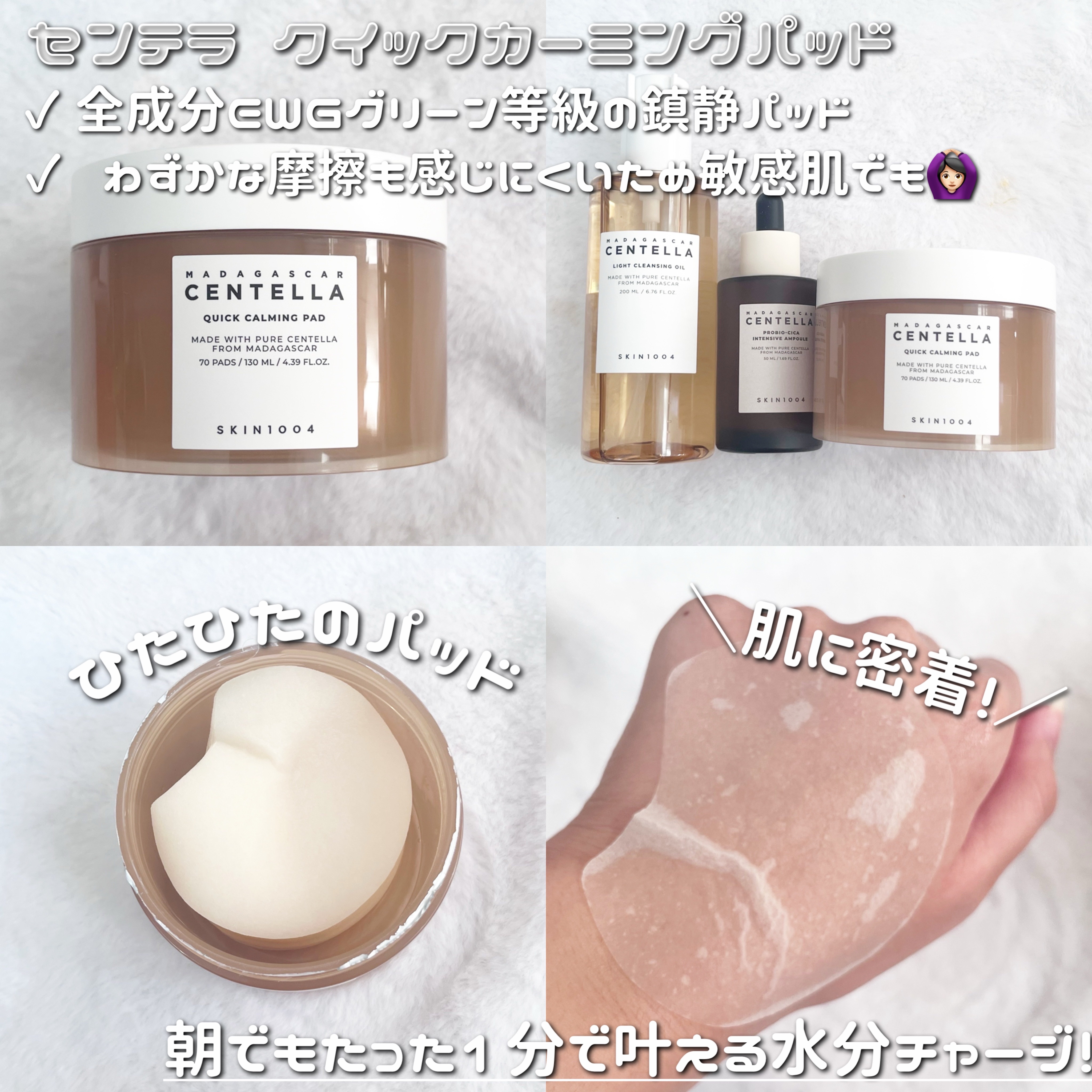 マダガスカル産のCICAを使用したスキンケアで3つとも優しい使い心地でした✨ 柔らかく摩擦を感じない素材でパックにも拭き取りもにも使いやすいです。 優しい柑橘系の香りがお気に入りです。