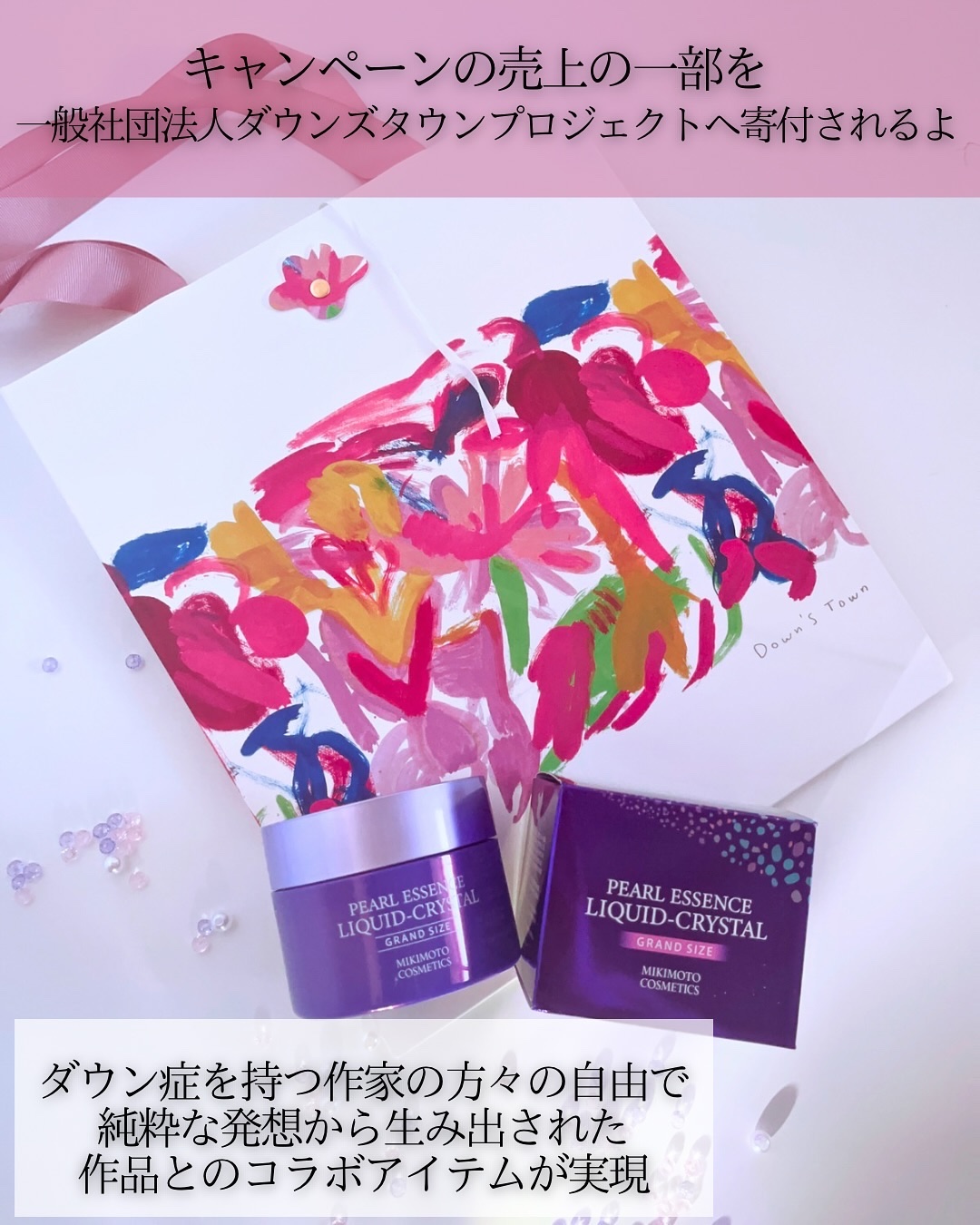 ダウン症の方たち特有の色彩感覚と「調和的感性」を現代社会へ発信するため、さまざまな活動を行なっている「一般社団法人ダウンズタウンプロジェクト」とコラボレーションを実施中✨ 中でもNARUMI製オリジナルマルチカップは通常であれば再利用が難しい真珠の貝殻を使用していて、海の資源を最大限活用したミキモトコスメティックスならではの取り組みなんです🥹 人気のファーストステップ美容液がお得なグランドサイズにて数量限定発売中✨ きらめく星空のようなキラキラジェルが肌をうるおいで満たし整えます。