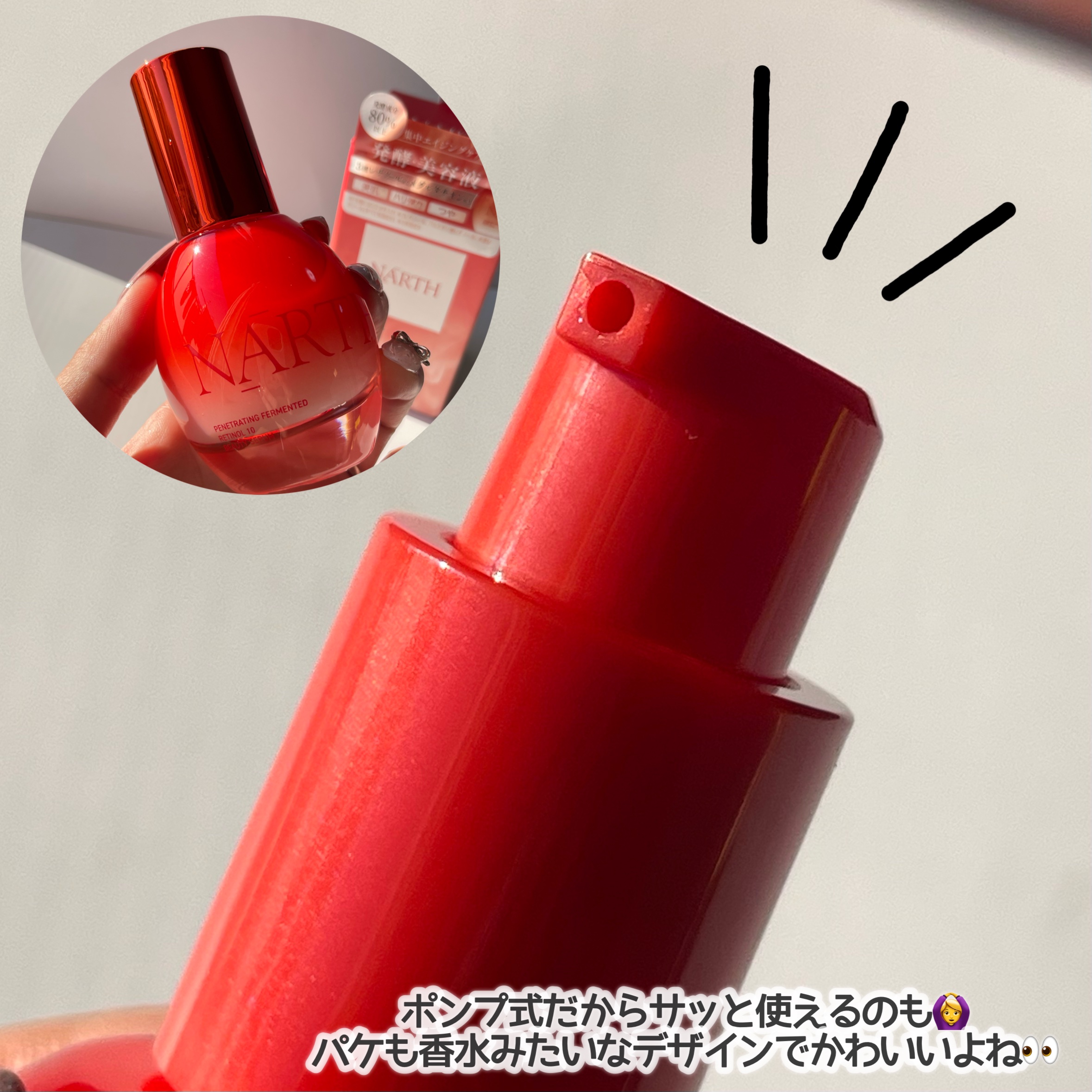 - NARTH独自の発酵美容成分「ファーメントソーム処方」。 ファーメントソーム処方による4つのギフト。 1、肌本来の力をサポート 2、肌をやわらかくする 3、肌への浸透*1効果 4、保湿効果 発酵成分80%以上の集中エイジングケア*2美容液です。 発酵×3種レチノール*3×グルタチオン*4配合。 美肌、ハリ弾力、つやへアプローチ。 *1角質層まで *2年齢に応じたお手入れ *3レチノール、パルミチン酸レチノール、水添レチノール(すべて保湿成分) *4保湿成分