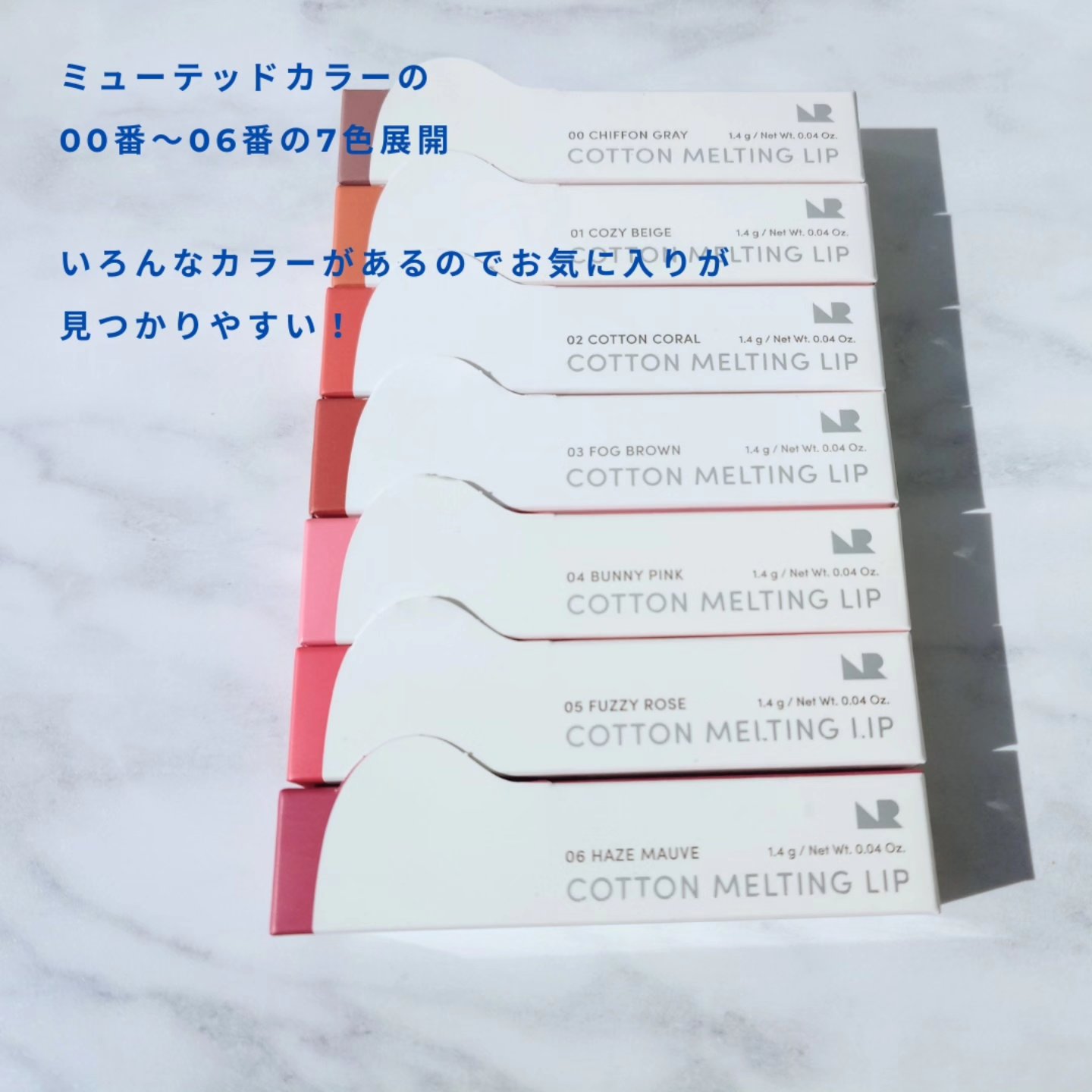 - ふんわりマシュマロ唇が作れちゃう「コットンメルティングリップ」が登場! シアバターと8種のヒアルロン酸配合で、マットリップなのに軽やかにうるおう新概念リップです。 イエベ・ブルべ問わず肌馴染みのいい7色展開で、いずれも落ち着いたミュートカラーが特徴。唇の質感をふんわりとぼかしながらマシュマロのような唇を演出します。 さらにチークやアイシャドウ、シェーディングにも使えるマルチユース。 1本ポーチに忍ばせればメイク直しも簡単です。