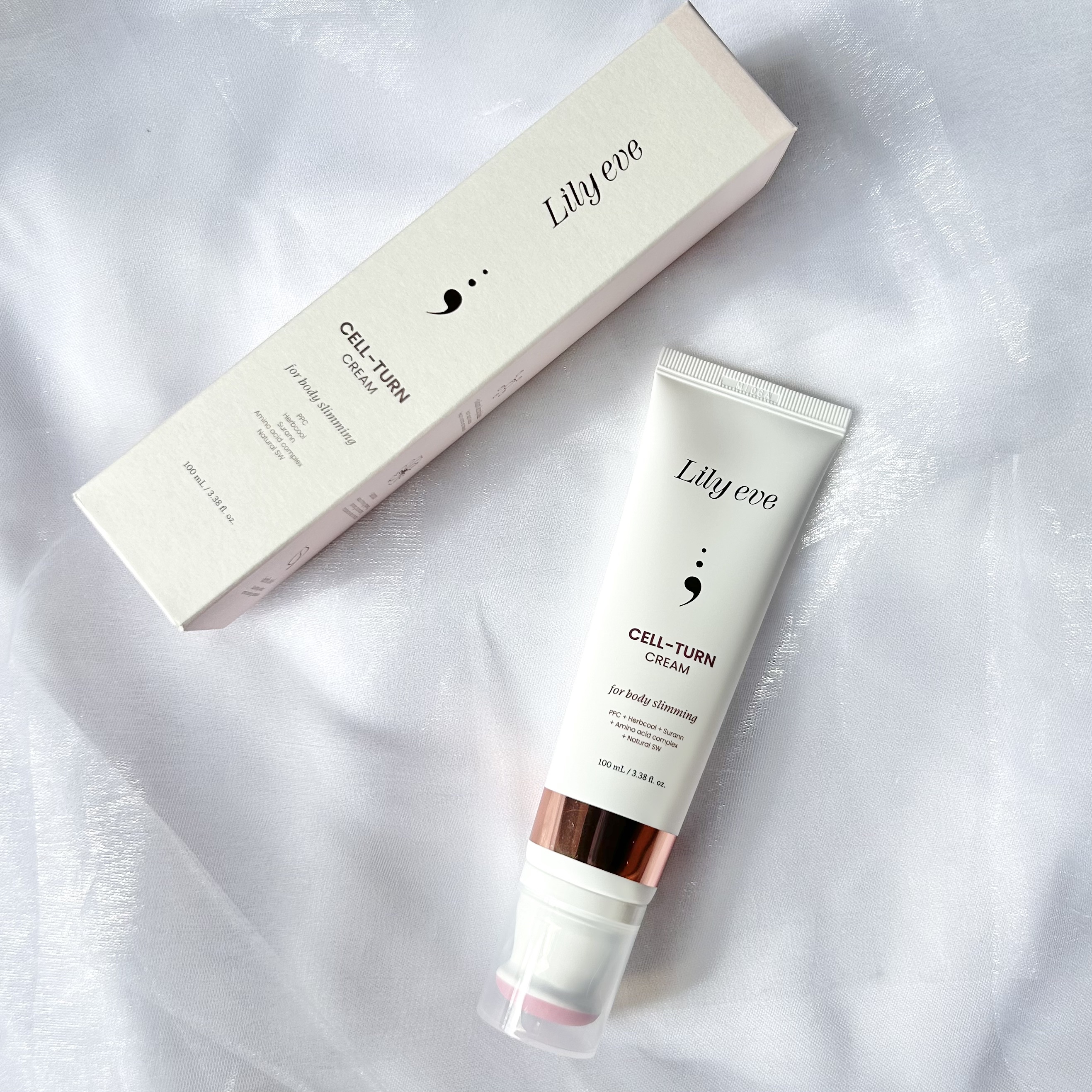 「リリーイブ」はクリニックにおいてよく使われる商材や原料とエステ級のツールを掛け合わせたホームケアプログラムを提案しているブランドです。 今回使用したセルターンクリームは、韓国のクリニックで使われている脂肪分解注射の成分であるデオキシコレートが配合されたクリームだそうです。 自宅で気軽にフェイスラインやボディの引き締めを目指せるアイテムということで、すき間時間を活用してケアできる点が嬉しいです!