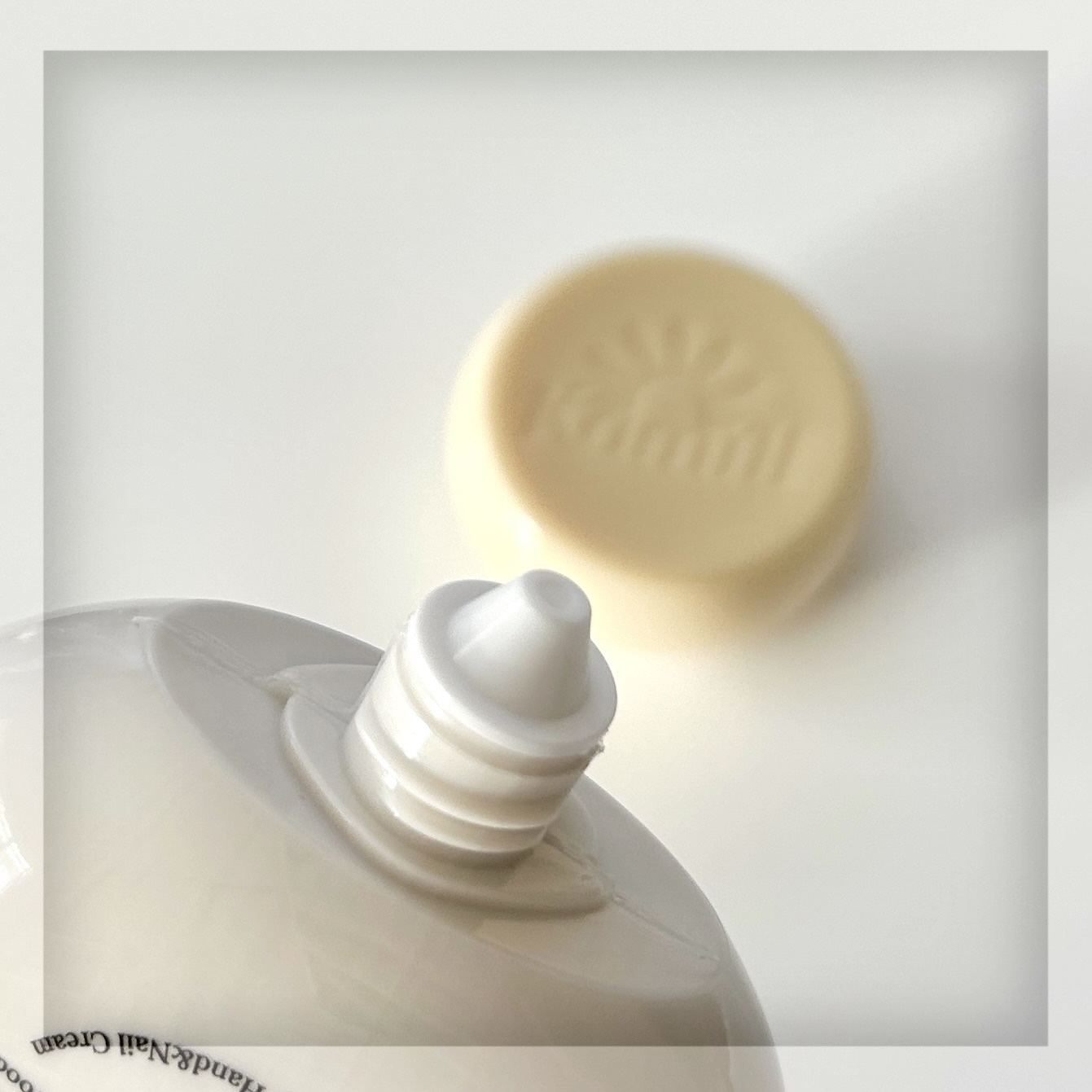 大切な記憶、美しい思い出の瞬間を香りで思い出させてくれる様な゛パフューマリーハンド&ネイルクリーム゛🌫️ カモミール・ジャスミン・サンダルウッドをメインに゛穏やかでだるい休憩゛💛 ころんとしたパケも可愛らしくて持ち歩きたくなる🫶