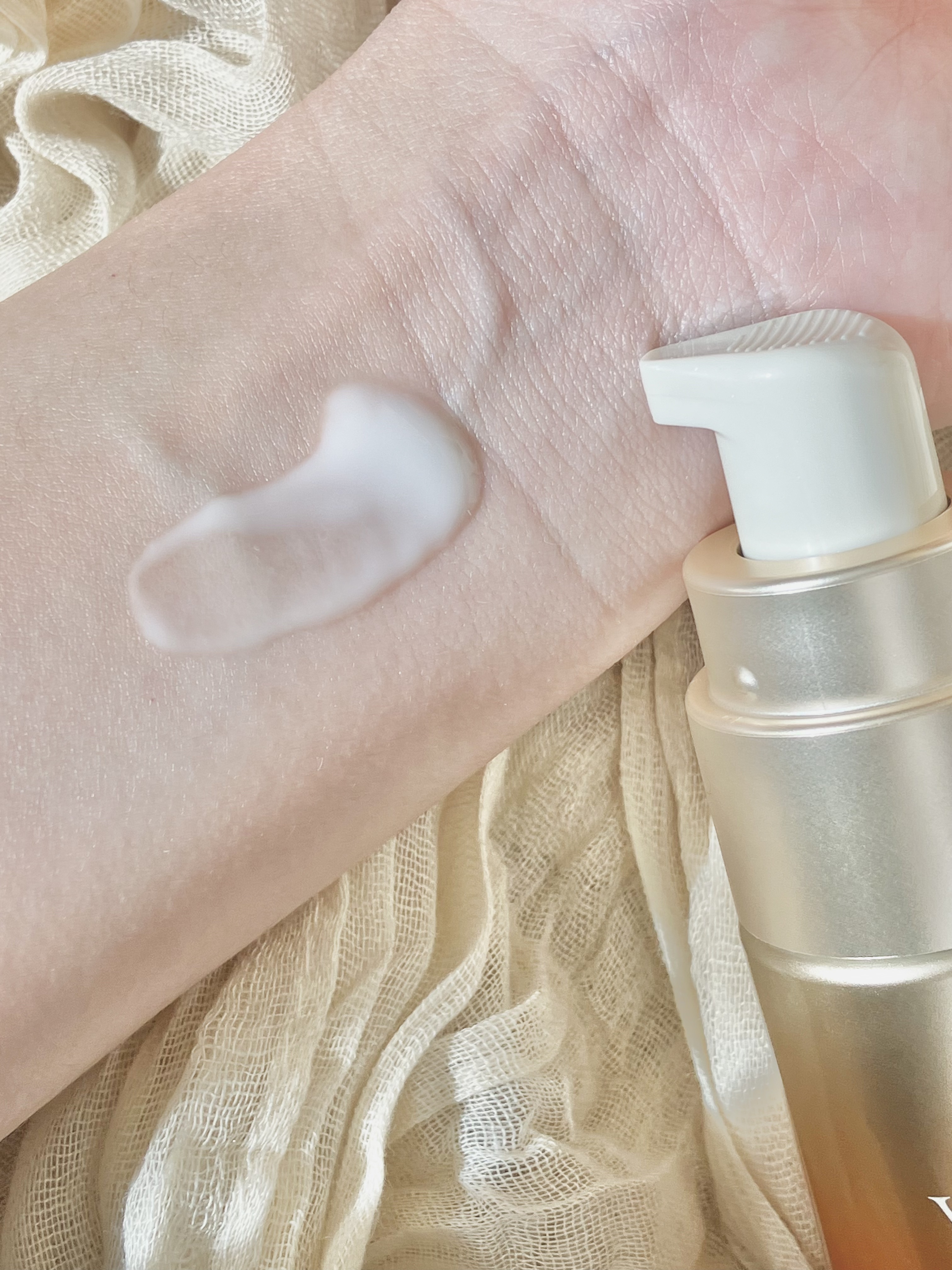 みずみずしく隙のないキメ美肌に導く高保湿乳液です✨ 使い方はコットンにディスペンサー3回押し分をとり、指にはさみ、顔の丸みにフィットさせ、丁寧になじませます✨ とろみのあるテクスチャーで伸びも良いため、次に使用する保湿クリームも上手く馴染んでくれそうな乳液でした🌷