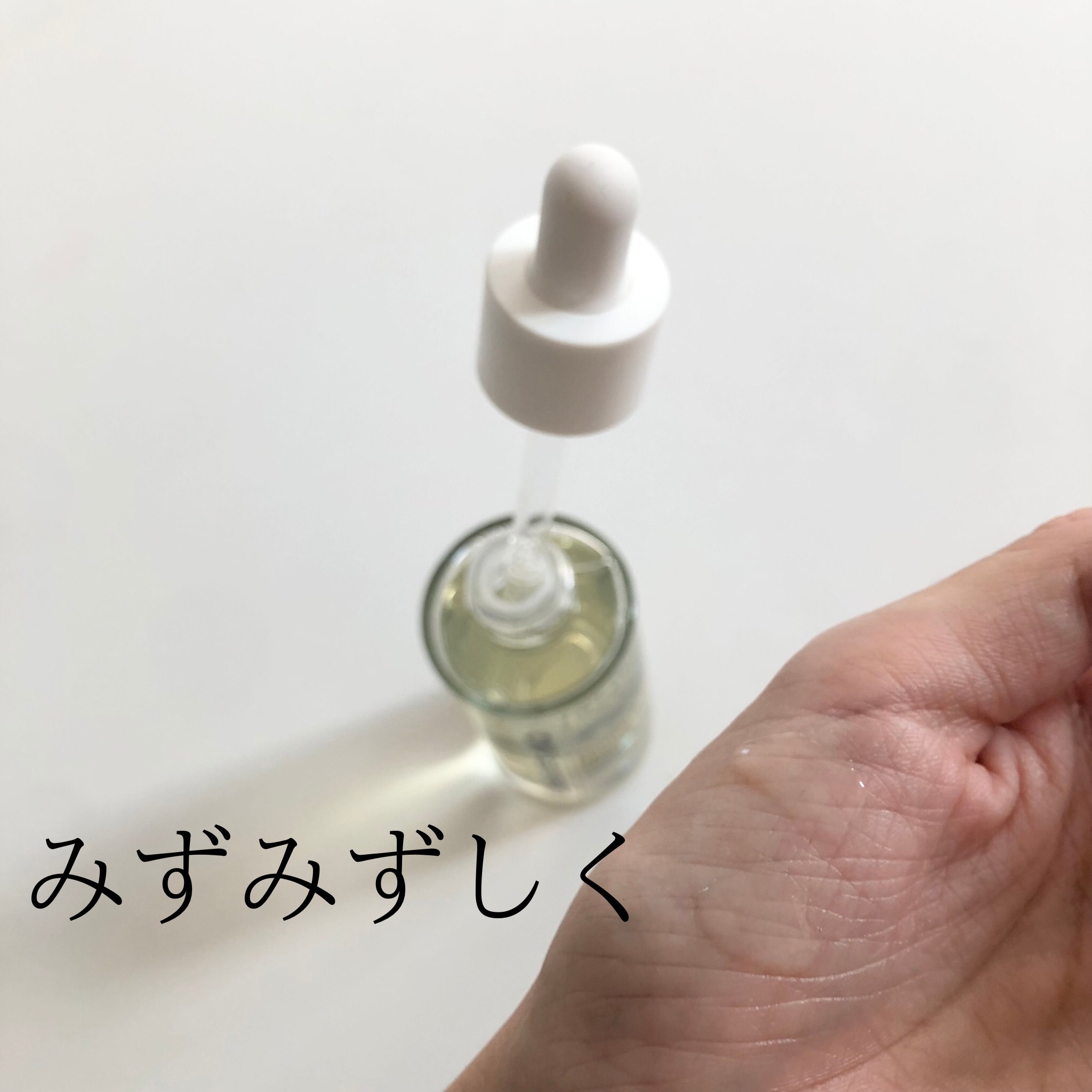 ややとろっとしたみずみずしい透明美容液。伸びがよく、気持ちよくつけれています。軽やかさだけではないつけ心地で、重ねて重ねてつける感覚ではないです。 さっぱりとしたみずみずしさ。やさしく香りながら、上品なフレグランスのように深みも感じれる香りです。メインはグリーン系?スモーキーウッディ系?で、夏のスキンケアにも良さそうな香りの美容液。