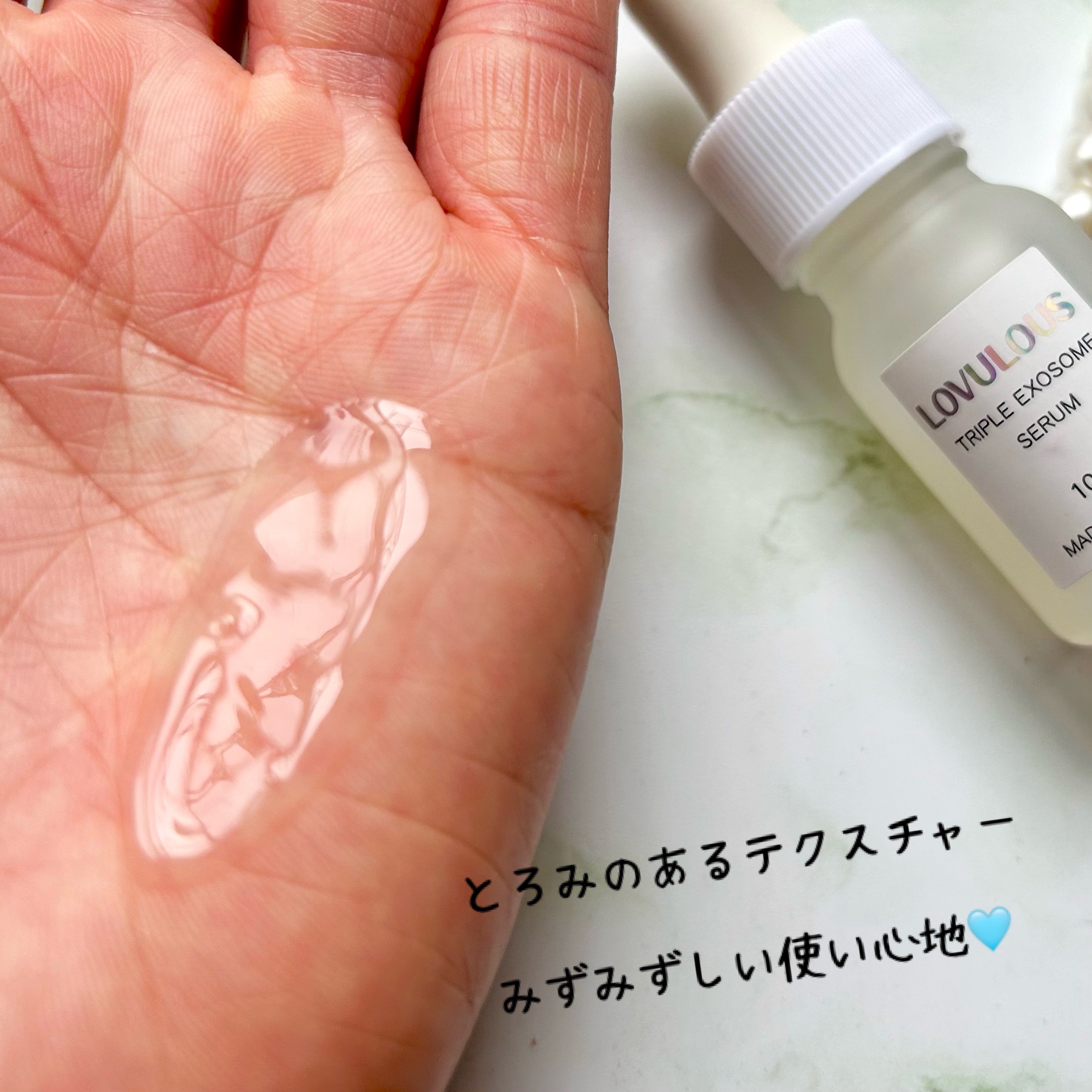 しっとりな使い心地がうれしい💛 高級感のあるガラスボトルがとっても素敵です! オイル層とローション層に分かれてるのでまずはよ~く振ってから使ってね。 オイルが入っているとは思えないようなサラッとしたテクスチャー✨ なじませると、みずみずしく しっとりとした使い心地です🤍 肌にほどよいツヤ感が出るので、ツヤ肌メイク好きの方にも向いている思う! 9つのフリー処方なのも、ゆらぎ肌にはうれしい処方だよね。