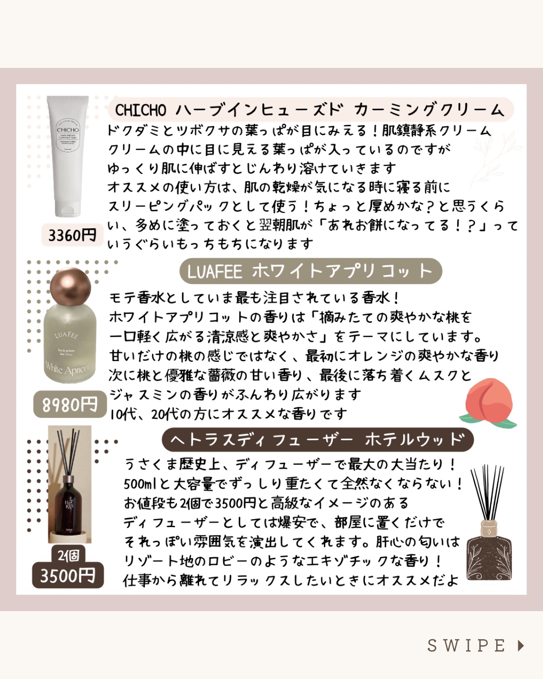 | ほんのり香るスズランの華やかな香りに、私が大好きなムスクの香りも楽しめるアイテム⸜︎💡⸝ | 詳細を見る |