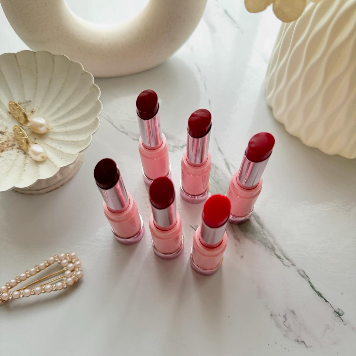 唇にフィットし透明感*¹ある美発色が続くとろける生ツヤ透発色リップ✨ 重ねれば重ねるほど深みのあるカラーに✨ モイスチャー感と光沢感もキープし、生ツヤっぽい光沢感を演出!