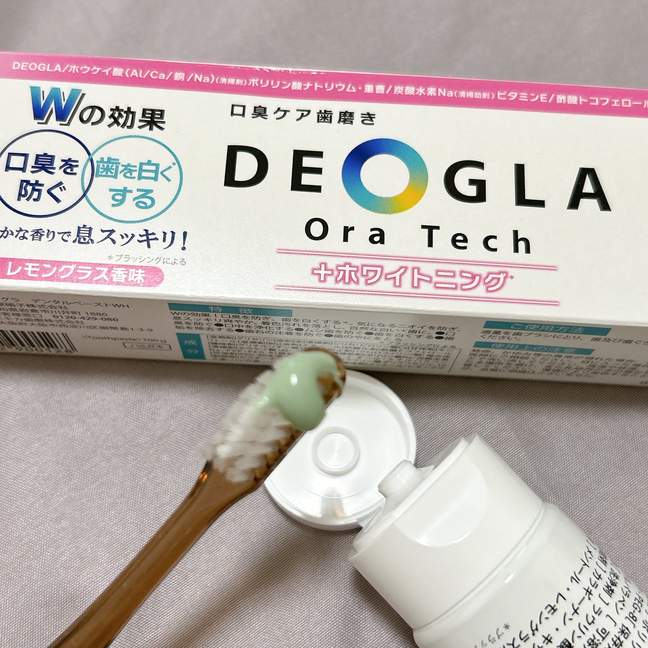 - \独自成分「DEOGLA®︎」(清掃剤)配合/ 創業200年を超える素材メーカーがつくる口臭ケアに特化した歯磨き粉! 製品の特長: 多数のご要望をいただいていた、口臭とホワイトニング *を1本でケアいただけます。ホワイトニング *はもちろん、独自成分DEOGLA配合で口臭にアプローチ。 徹底的にこだわった成分を配合しているので、口臭ケアとしてだけでなくお口のトータルケアにご活用ください。 ミントが苦手な方にもおすすめな、レモングラス香味、控え目な泡立ちでしっかりとブラッシングしていただけます。 ▶独自成分DEOGLA : 化粧品成分名称 ホウケイ酸(Al/Ca/銅/Na) *ブラッシングによる