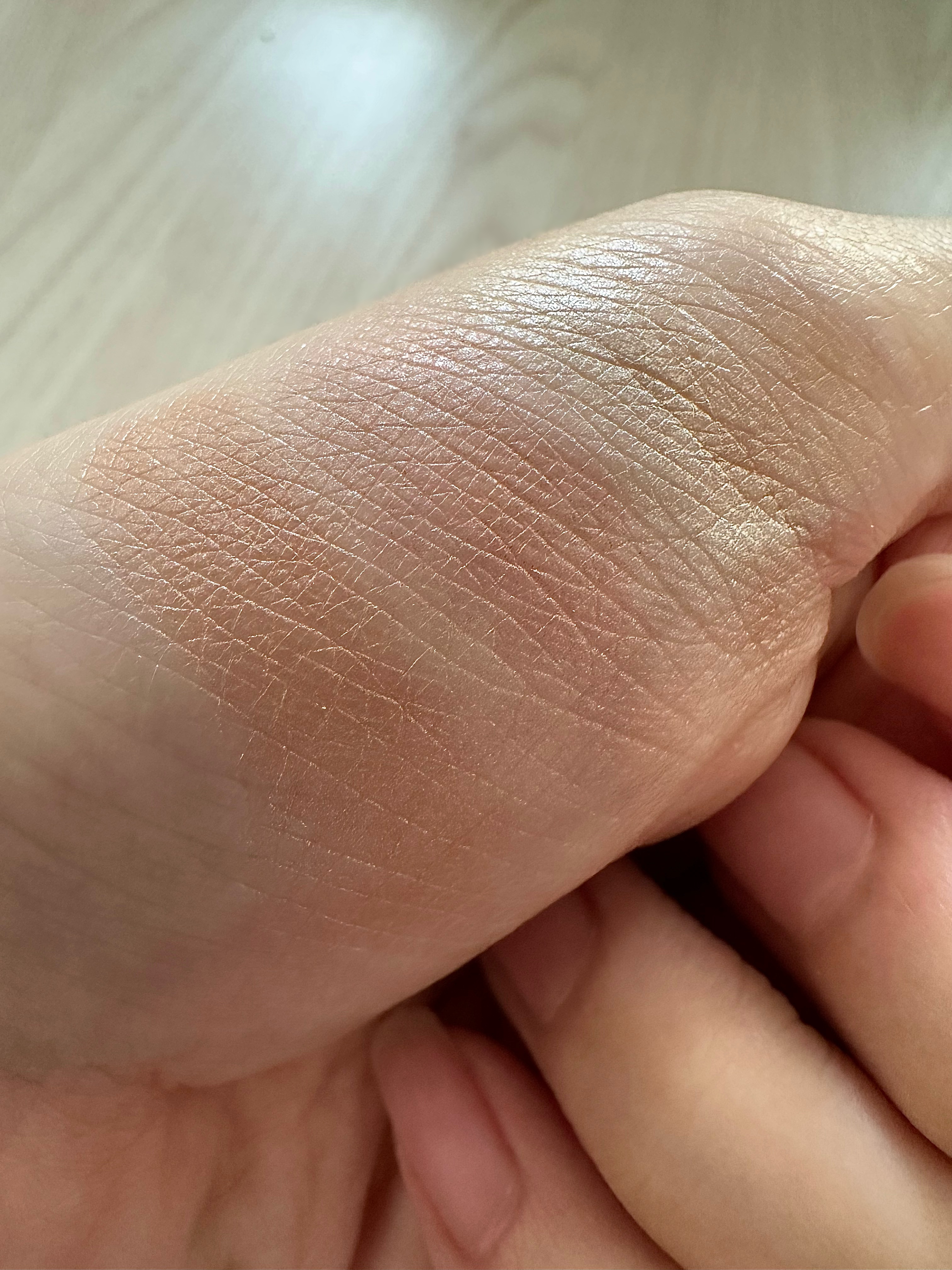 G01はほんのりくすみを感じる血色感ピンク。 R01は白っぽく光りながら黄みがあるので肌馴染みのいいハイライトカラー。 R08は手に取るとオレンジっぽさが強いですが、目元に塗ると奥にピンクがあるような絶妙なベージュで肌に溶け込みます。1番のお気に入りです🍰 指にとった瞬間にびっくりするくらい粉質がよく、ぴったり密着する艶のあるラメがとても綺麗です🫶🏻