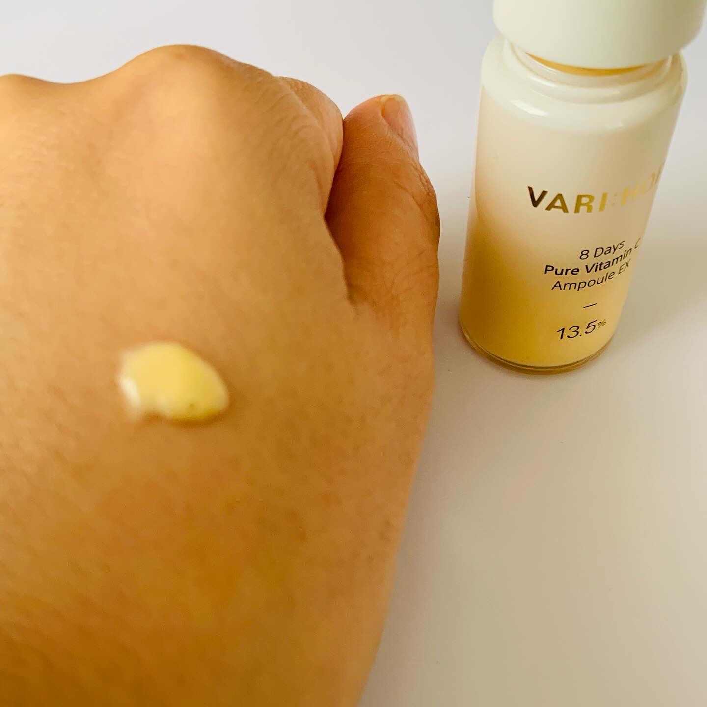 刺激もベタつきもなく、美白を実現!純粋ビタミンCセラムで 8日間の美白ケアをスタート 13.5%のピュアビタミンCを含有 光や熱水分で簡単に酸化され変色される難しい成分だけど、2重レイヤー工法で純粋ビタミンCの安定化に成功 乳白色のトロミテクスチャーで ザレモンって感じのスキッといい香りが凄いする🍋