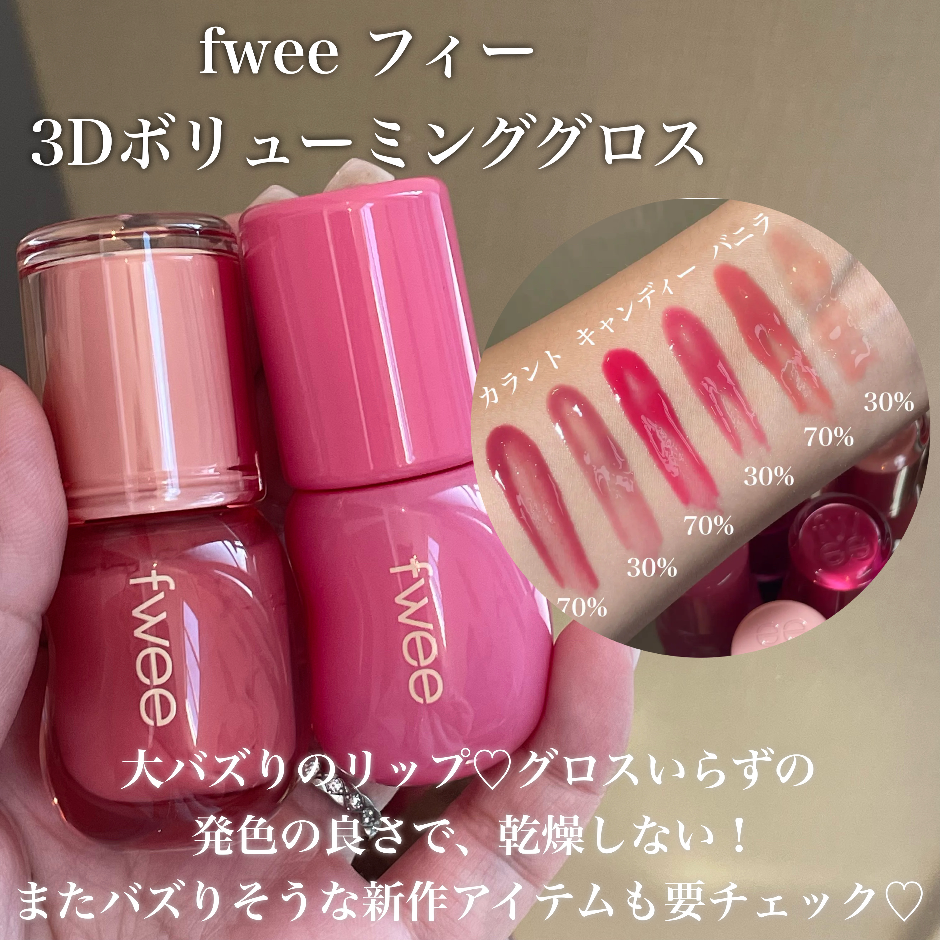韓国コスメ、fweeのリップグロス✨ 好きすぎて、また追加で購入したので手持ちのカラーをスウォッチしました💕 カラー展開がとにかく可愛くて、全色欲しくなる勢い✨ 唇が乾燥することもないし、仕上がりに立体感が出てぷるぷるになるのでおすすめです💕