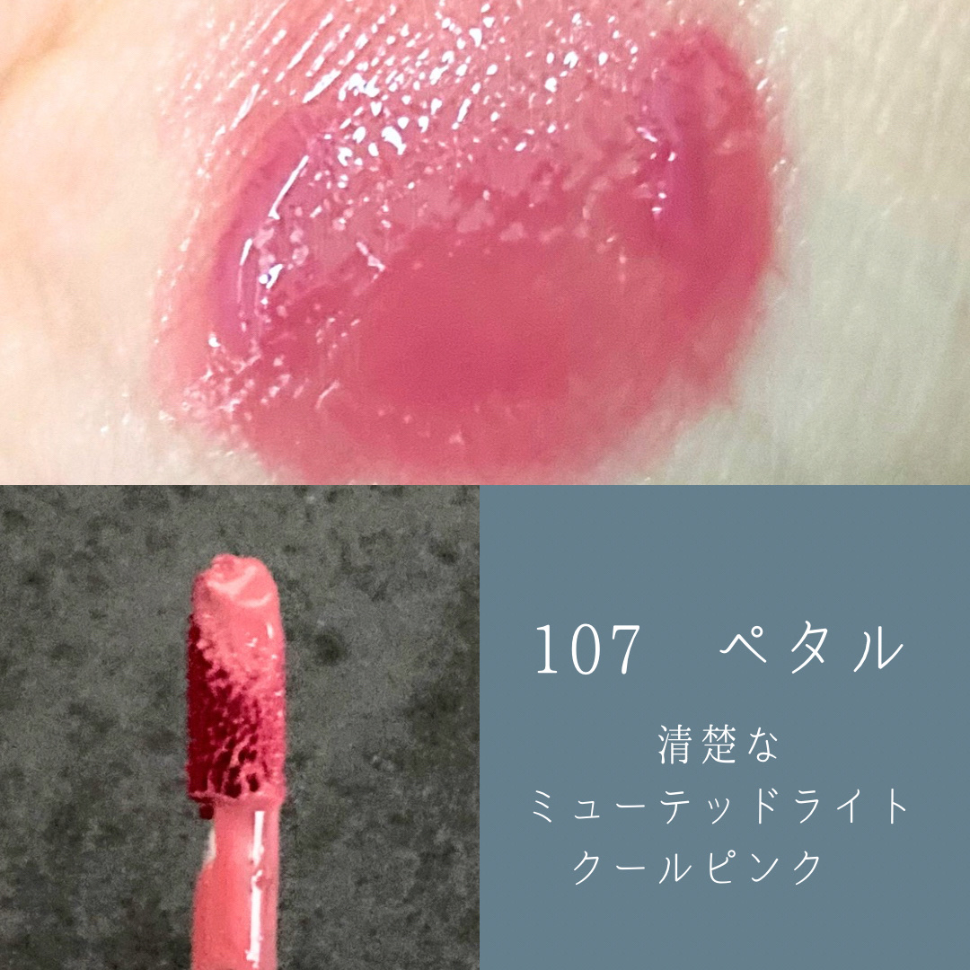【評価】★★★・・・良い✴︎リピ未定!普段は石けんオフコスメしか使わないけど限定カラーという事で応募したら当選しました✴︎108のグラムベージュの方が透け感があってラメのおかげでツヤツヤな印象◎透け感があるのでそんなにハッキリと色が出る感じで...
