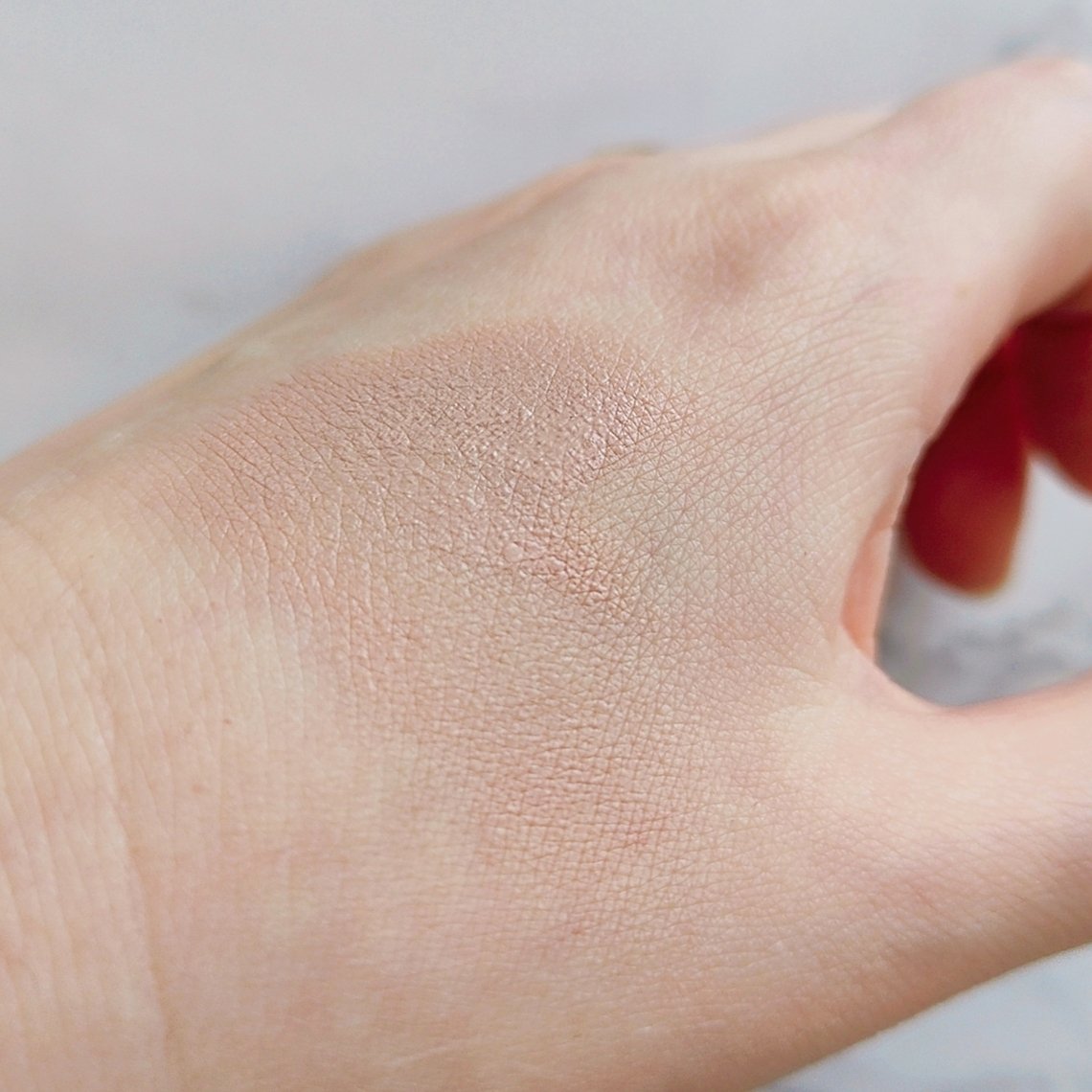 テクスチャーはみずみずしくサラサラ。 べたつかないから、軽いタッチで使えます。(二層式なので使う前に良く振って) ほんのりベージュ色をしていますが、馴染ませるとクリアに。 頬や鼻まわりの赤みや毛穴を整え、ふんわり目立たなくしてくれます。 自分の肌色を選ばず使いやすい所もいいですね。