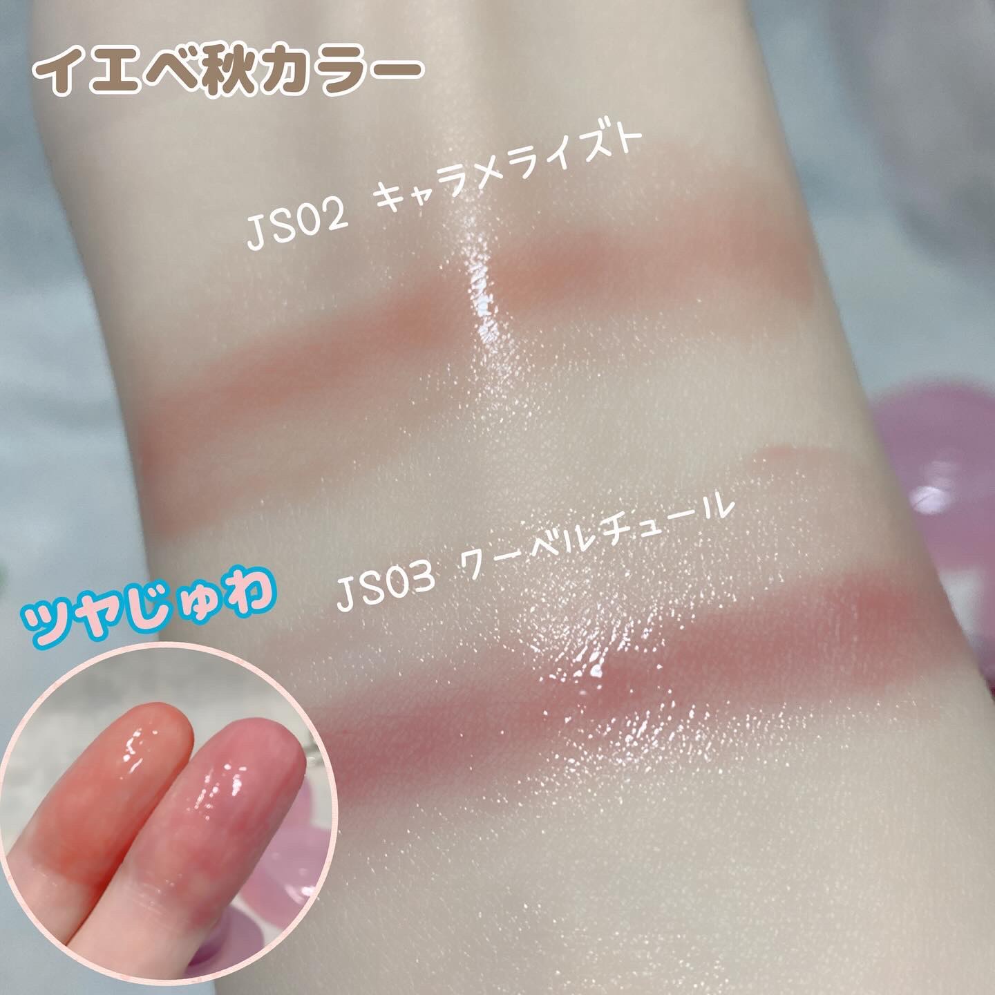 ぷにぷにしたジェリーのようなテクスチャーをした新作のリップアンドチーク💘 全19色展開で理想の色が見つかるはず☺︎ 画像はブルベ夏さん向けのカラーで透明感がありペリーのような香りがします🍓🫐 大人気のキーリングも新作バージョンとなって登場❕ ピンクカラーでかわいすぎる、、😻