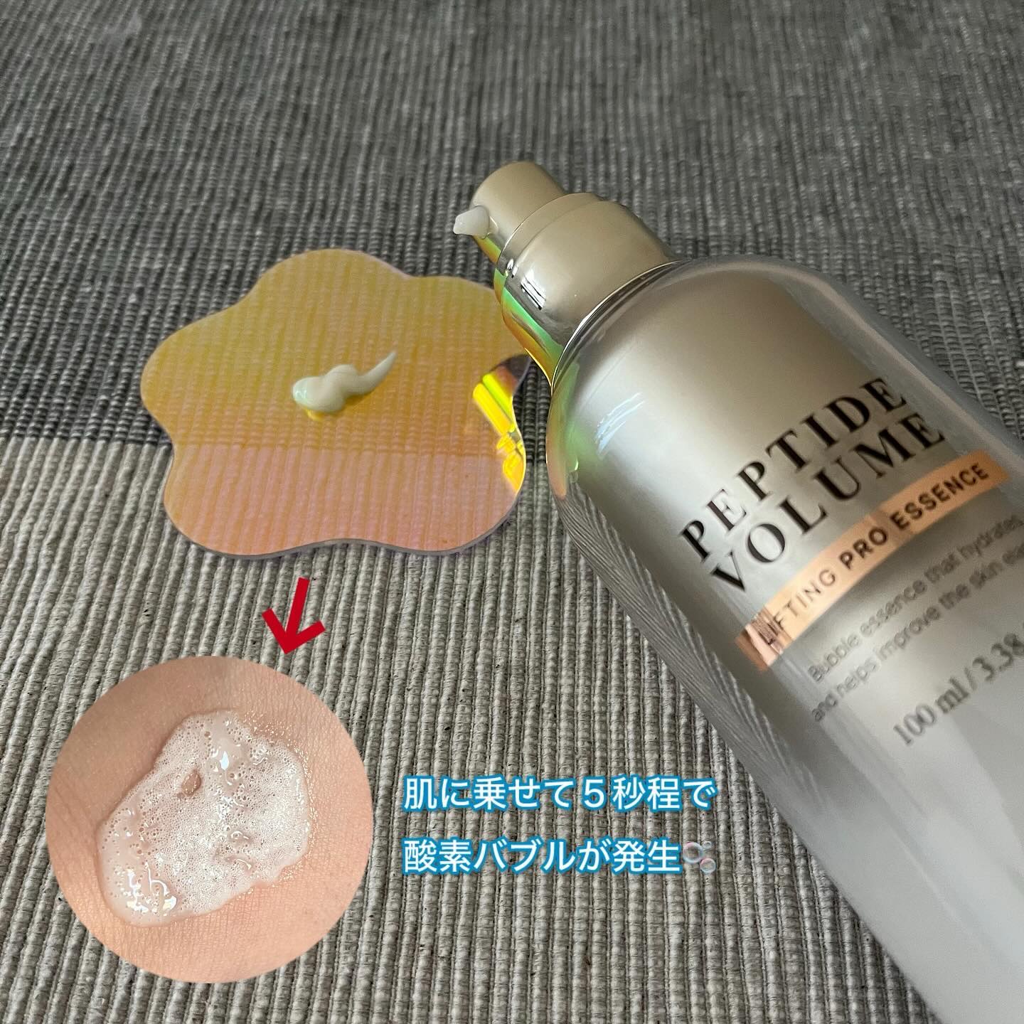 25種のペプチドなどの有効成分で肌悩みに一気にアプローチしてくれるリフティングエッセンス🪞⟡.· この美容液おもしろいのが肌に薄く塗ってしばらくする泡になるの🫣 炭酸泡で肌への浸透力がUPするんだとか👏🏻 モチモチの弾力肌に◎ ハリのあるプリプリな美肌に導いてくれます🤍