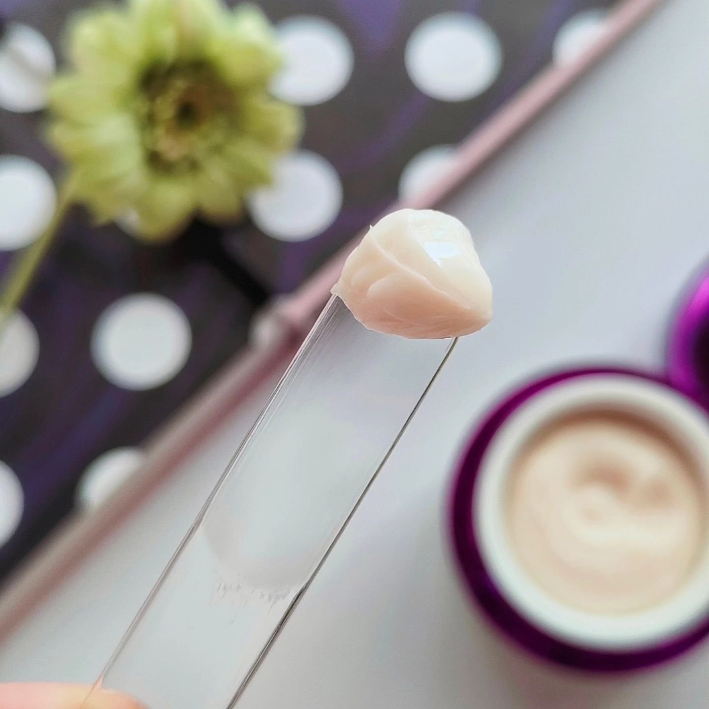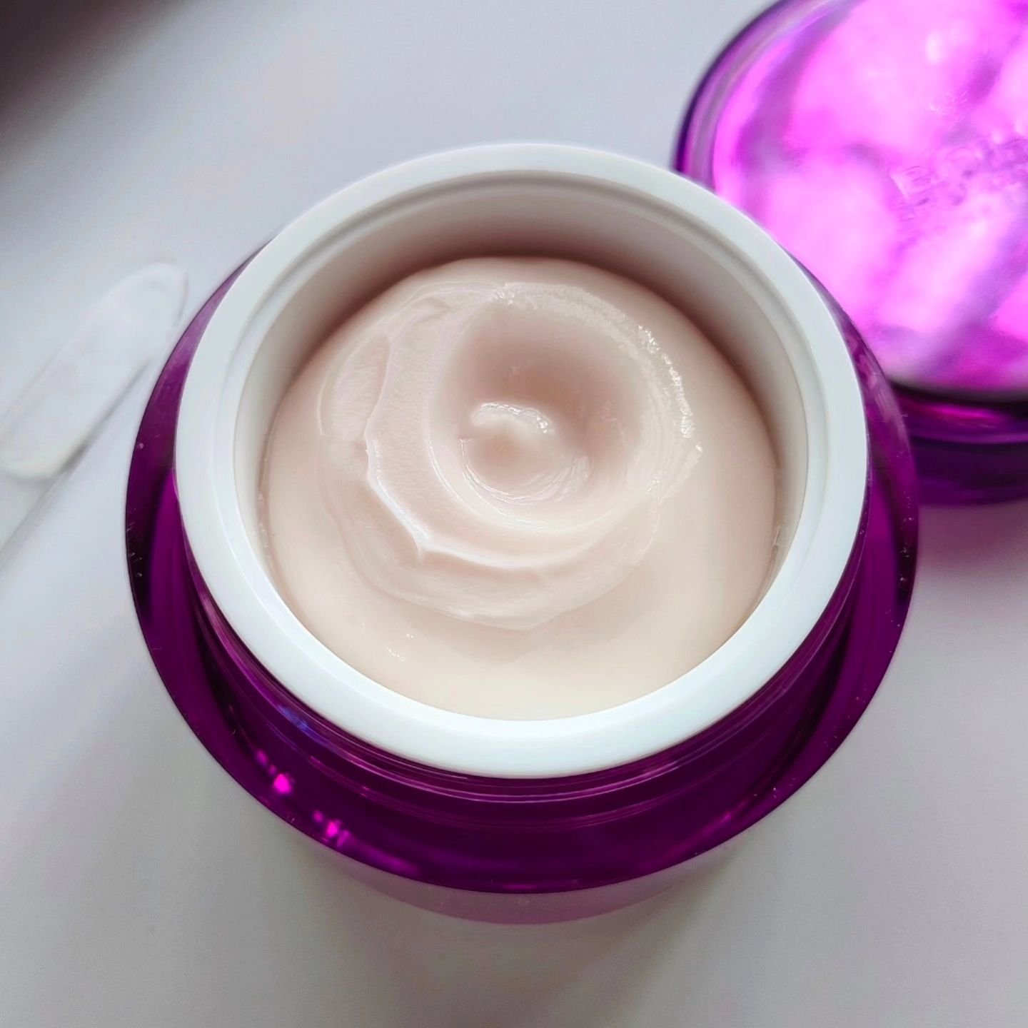 ハリ弾力をケアすることから#ハリ活乳酸菌*をキャッチコピーとしていて、TOP3の選ばれし優秀な乳酸菌を配合しているという特徴があります。 バイオヒールボ独自の技術で肌表面をピンと引き上げ、よりリフトアップ感が得られるテクスチャーを実現したそうですよ。 濃厚なテクスチャーで上品の香り。コクがあるクリームで伸びがよく馴染みやすいですね。