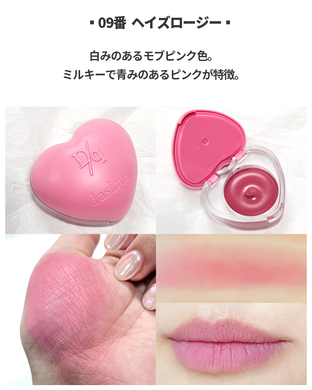 - ふわふわのスフレテクスチャーが優しくブラーリングされ、唇と両頬に愛おしい生気を加えてくれるマルチハートカラーポット。 【Point1】ふんわりやわらかい#ふわふわスフレテクスチャー!ふわふわしたスフレテクスチャーでべたつかず、サラッとした仕上がりになります。 【Point2】トーン別、15種カラー!似ているカラーなくトーン合わせ。愛おしいカラー盛り込んだ15色のカラーバリエーション。 【Point3】ラブリーさと便利さをすべ盛り込んだ#ハートカラーポッド!ハートシェイプのラブリーな外観とミニリップスマージングブラシ内臓で手軽にキレイなハートブラーリンリップの演出が可能です。