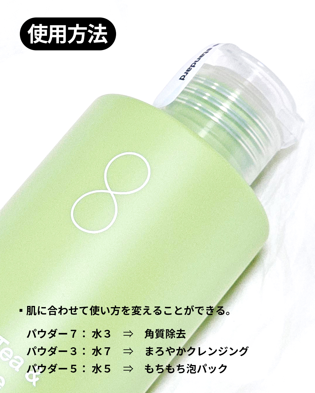 緑茶でいたわる肌 ♡緑茶パウダーとパパイン酵素配合(全て整肌成分) 敏感肌のための角質除去 ♡香ばしい緑茶の香り 洗顔から角質ケアまで量を変えて使えます◎ 泡立てネット使えばよりもっちりとしたもこもこ泡で洗うことができます𓂅