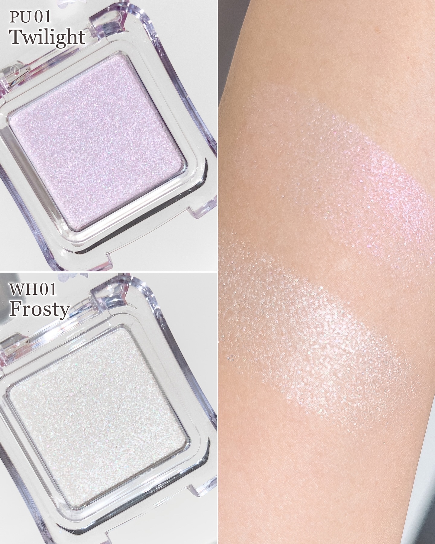 2aNからブランド初のホリデーコレクションが発売🎄 カラー自体は新色で、パッケージが限定デザインなんだそうです♡ ほんのりくすみ感のある、ミュートなピンクグレーのパレット。ハイライトカラーに中間色、ラメや陰影カラーまで揃っているのでデイリーにも使いやすいです◎ まるでガラス玉のような水光感のあるツヤを楽しむことができるハイライト。WT01 Frostyはホワイト&シルバーラメのツヤ感が輝くカラー。