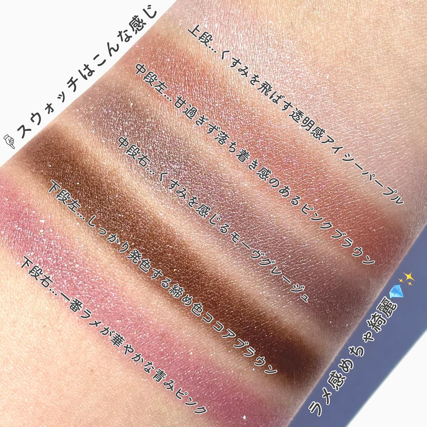 | アイシャドウパレットランキング第12位 | 光にあたるとキラッと輝くのにギラつき感はなくて、程よいツヤのようにも見える絶妙さがたまらない🥰 | 詳細を見る |