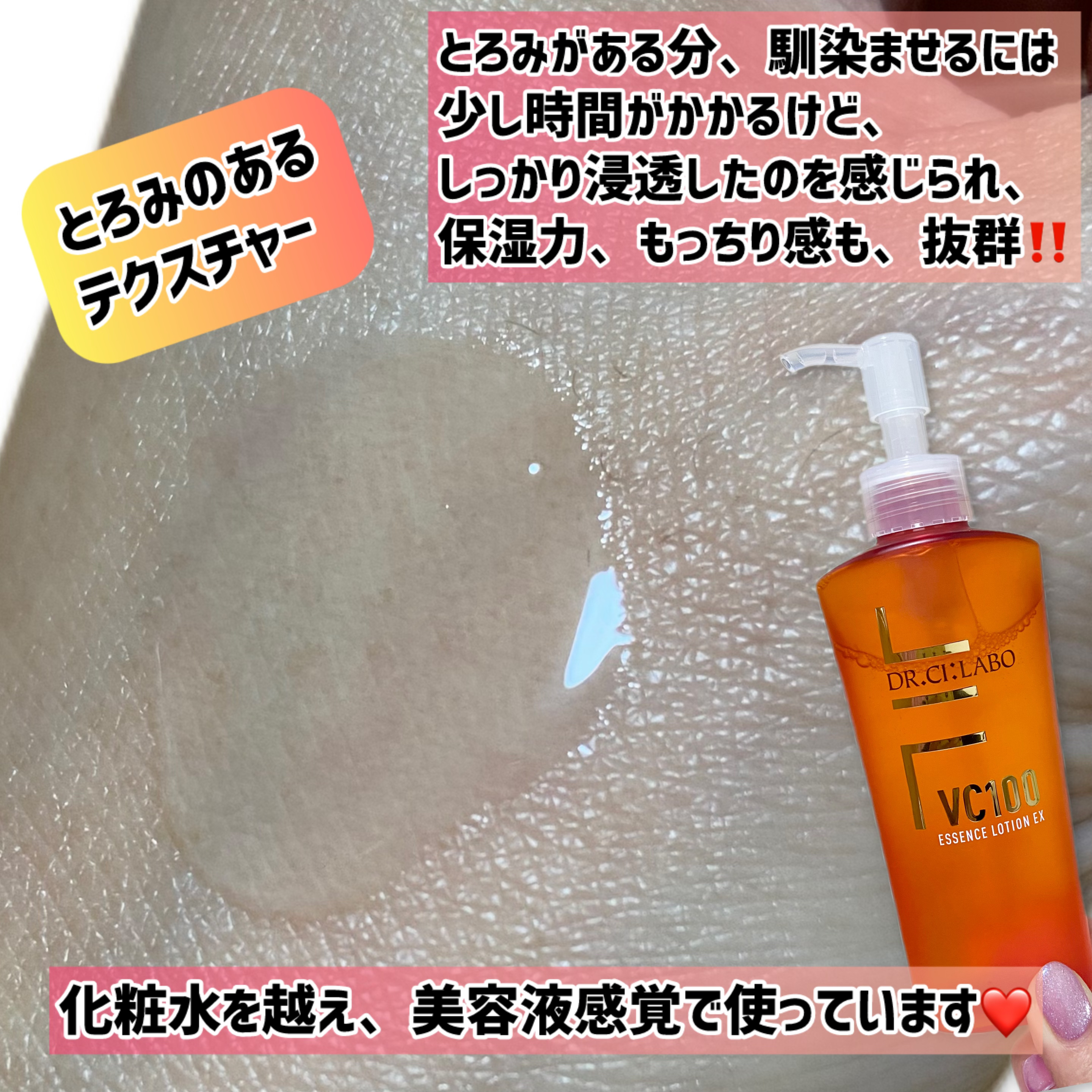 ドクターシーラボ史上最高濃度のビタミンCを配合した化粧水 高浸透ビタミンC配合の化粧水 肌のキメを整えて、光を反射するつや肌へ みずみずしくとろみあるテクスチャー 肌にのせるとサッと馴染ませやすいです。