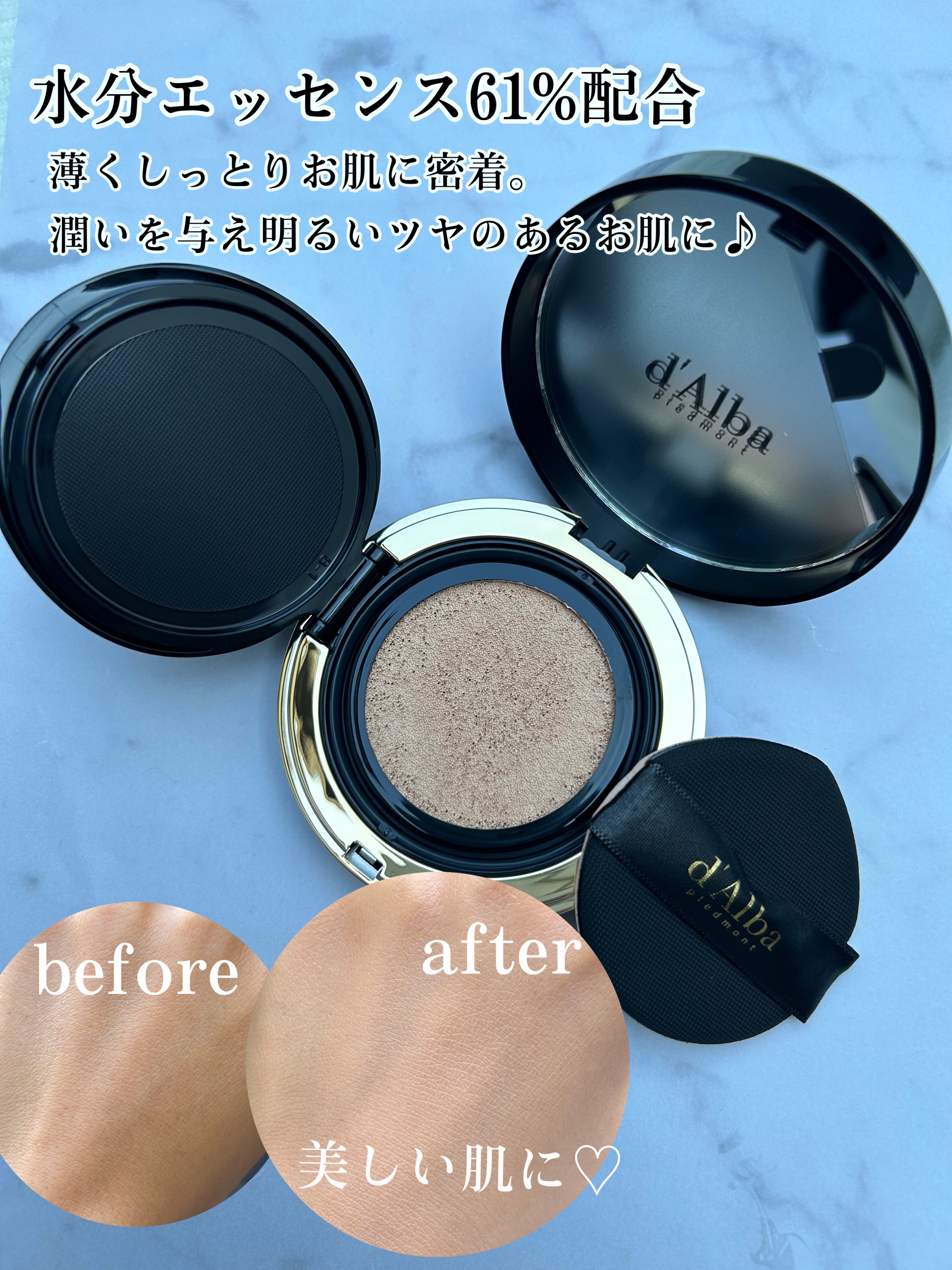 艶がやっぱりすごかった...🥺‼️ 「CAミスト」として名高いダルバからでたクッションファンデーションです 61%の水分エッセンスを配合していて、しっとりと肌に密着し自然な輝きと滑らかな肌を演出してくれます シワ対策やたるみ対策にも有効な成分が入っているそう✨ アンチエイジング効果もあるベースメイクを探している方におすすめです♡