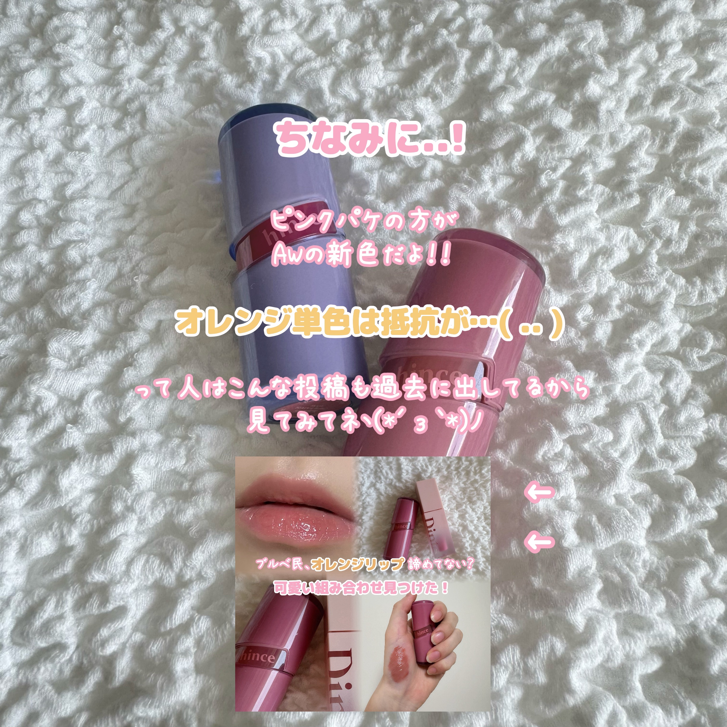 | リップティントランキング第3位 | 重ねて塗っても、ちゅるんと透け感が残って明るめカラーがとっても映える…💕色残りも◎ | 詳細を見る | ||
