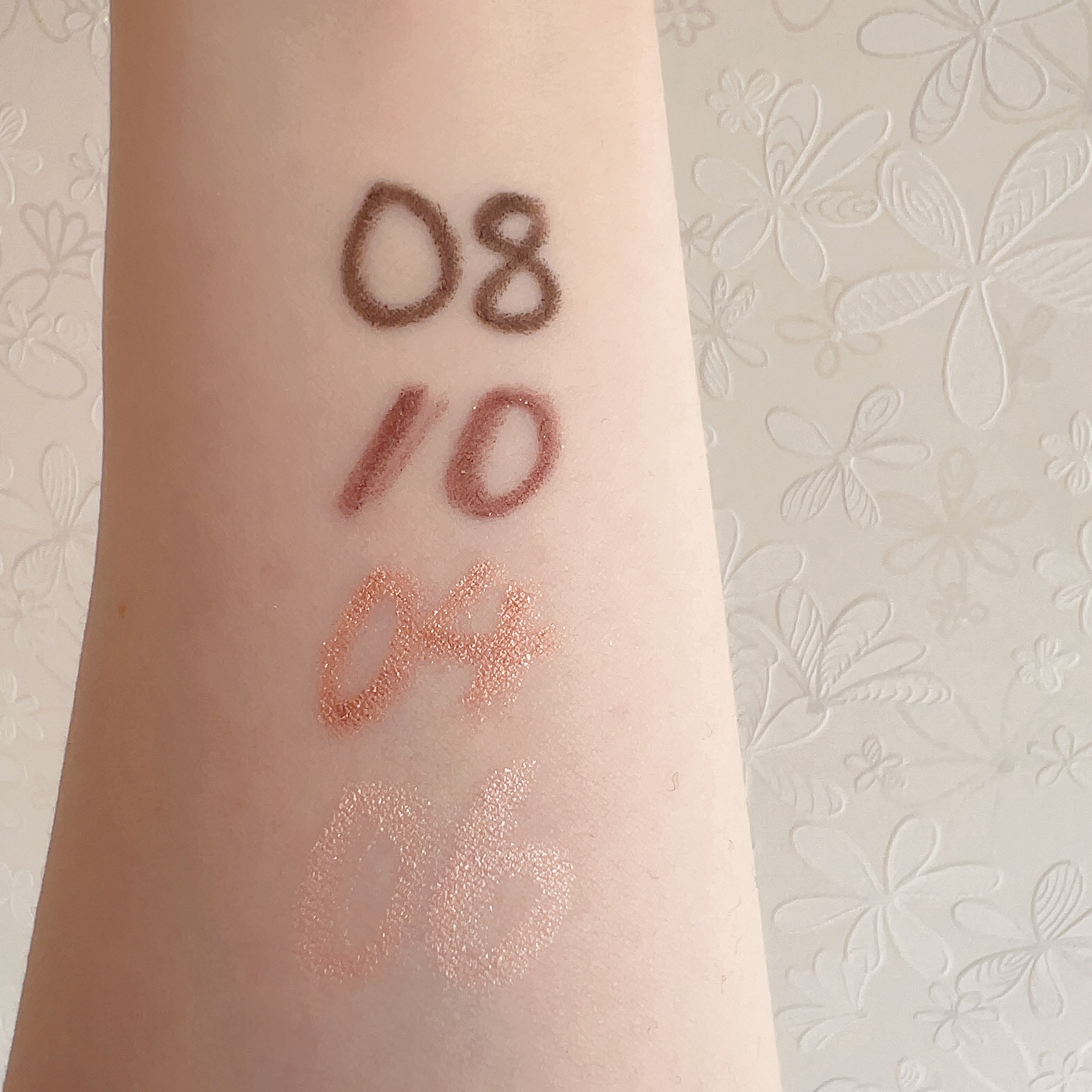 1つ880円で手に取りやすい価格とサイズ、たくさん集めたいコスメオタクとしてはとても嬉しいです🥰 サイズ感は通常サイズよりふた周りくらい小さくてポーチに入れても邪魔になりません リップモンスターなので当たり前の落ちなさ…!! ラメ感もしっかり残るのでいいですね〜✨ ブラウンリップを使ってみたいけど…と思ってるブルベさんに是非挑戦してみてほしい色です。 ブラウンで透け感がありベタっとつかないのでブラウンリップ初心者さんにも。 青ラメがザクザクで比較的ブルベでも使えるブラウンリップかなと思いました フラッシュピンクがどんな色かが分からない🤣 The・青みピンクでは無く少し黄みも感じられる色で私はベビーピンクのように思いました ピンクが好きなら好きな色かなーと。 1番ラメ感が控えめかなと。 1番ラメ感が強くて青ラメザクザク😍✨ 青ラメ好きさんこっちですよーと言いたくなる色です! 発色は1番淡いのでなにかの上に重ね塗りするのがいいかな〜 濃いめのリップが好きなのでこれだけならちょっと物足りなかったです😂