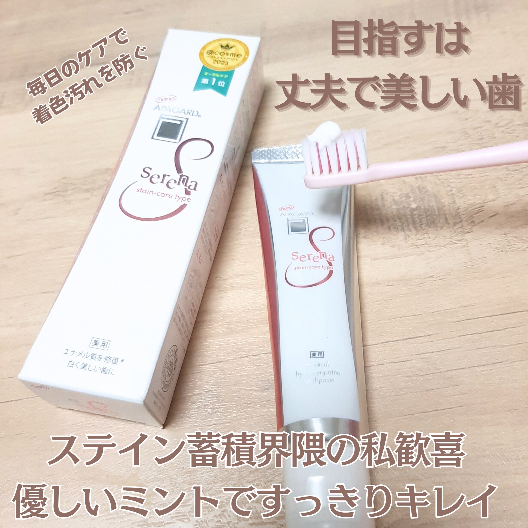アパガードセレナ53g・アパガードクリスタル歯ブラシ(1本)モニターキャンペーンで、美白歯みがき「アパガード」シリーズのステインケアタイプを提供していただきました👏サンギ開発のむし歯予防成分「薬用ハイドロキシアパタイト」を配合☝️̖́-︎...