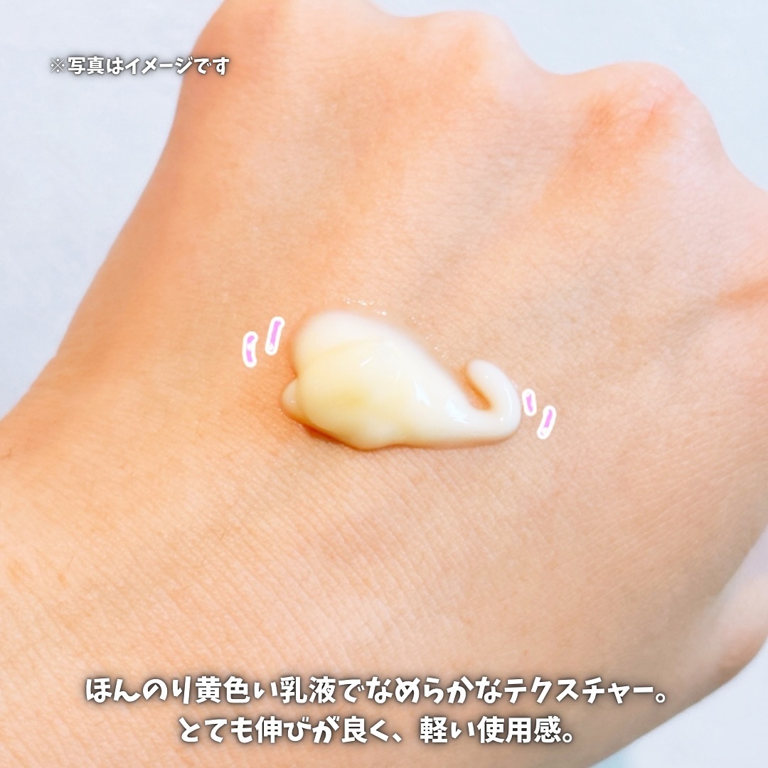 ビタミンC誘導体がたっぷり配合された乳液で、乾燥によるくすみにアプローチしてくれる! さらに8種類のヒアルロン酸とツボクサエキスも配合されているから、保湿しながらスッキリ仕上げてくれるのも特徴◎ アルコール、パラベン、フェノキシエタノール、PEG、合成着色料、ミネラルオイルの6つの成分がフリーだから敏感肌に優しいし、季節の変わり目にも使いやすくて良い🫶